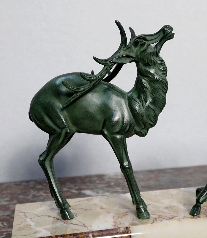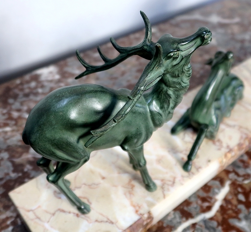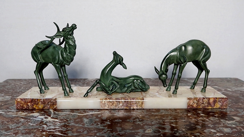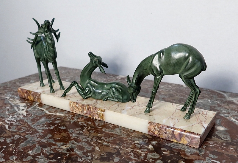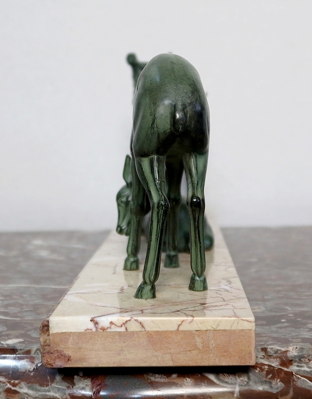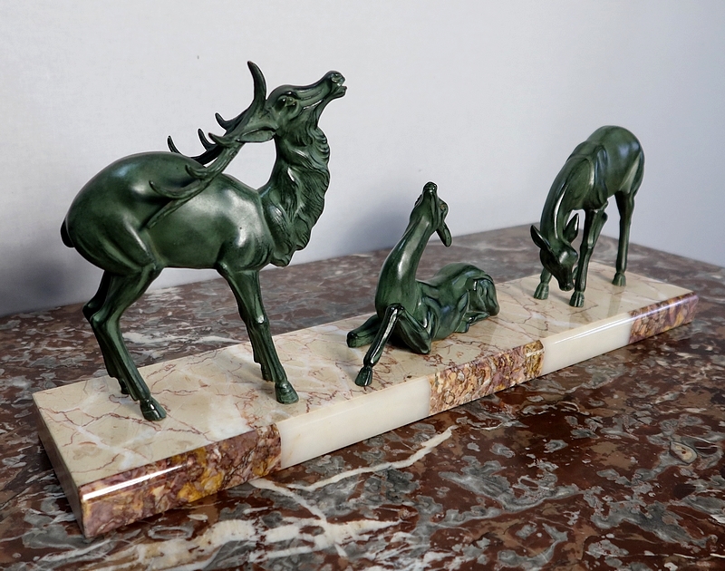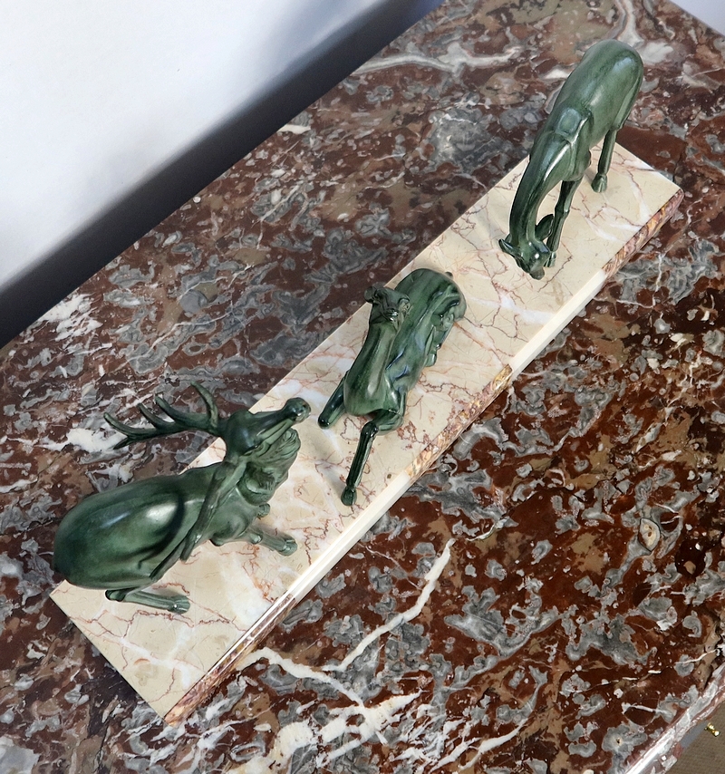 Régule patiné « Cerf et ses biches », Art Déco – Début XXe