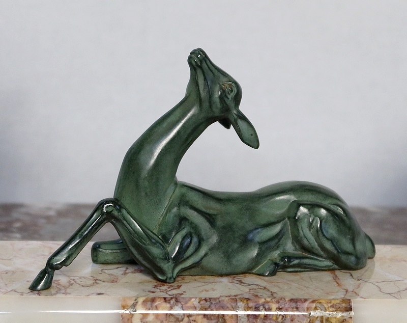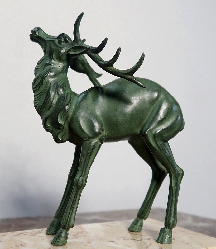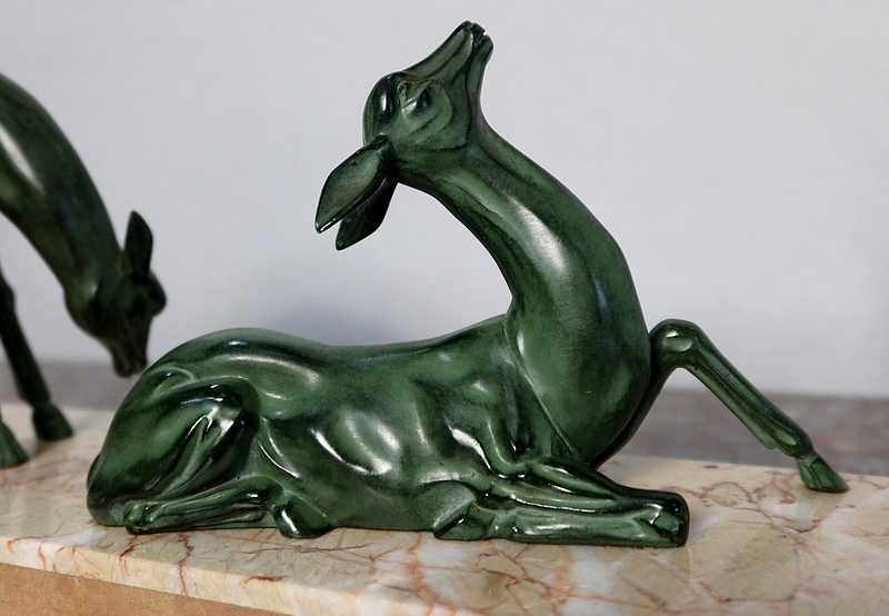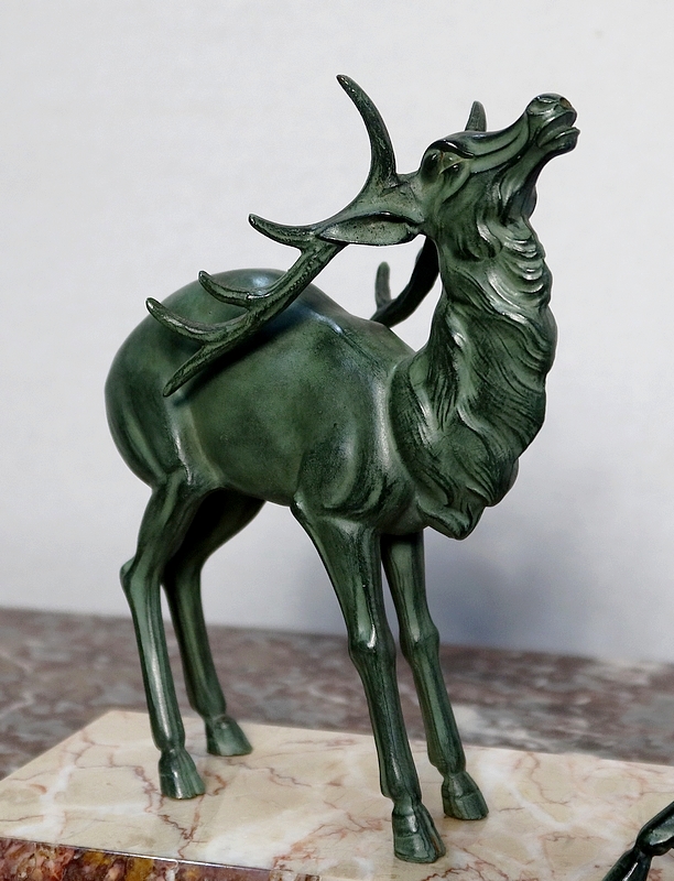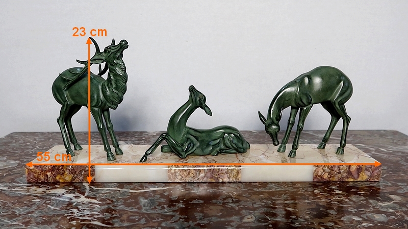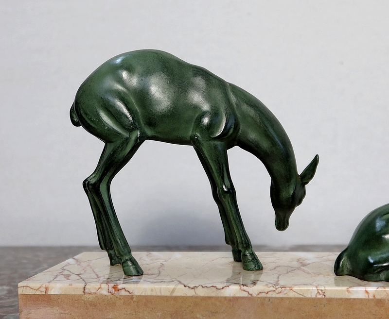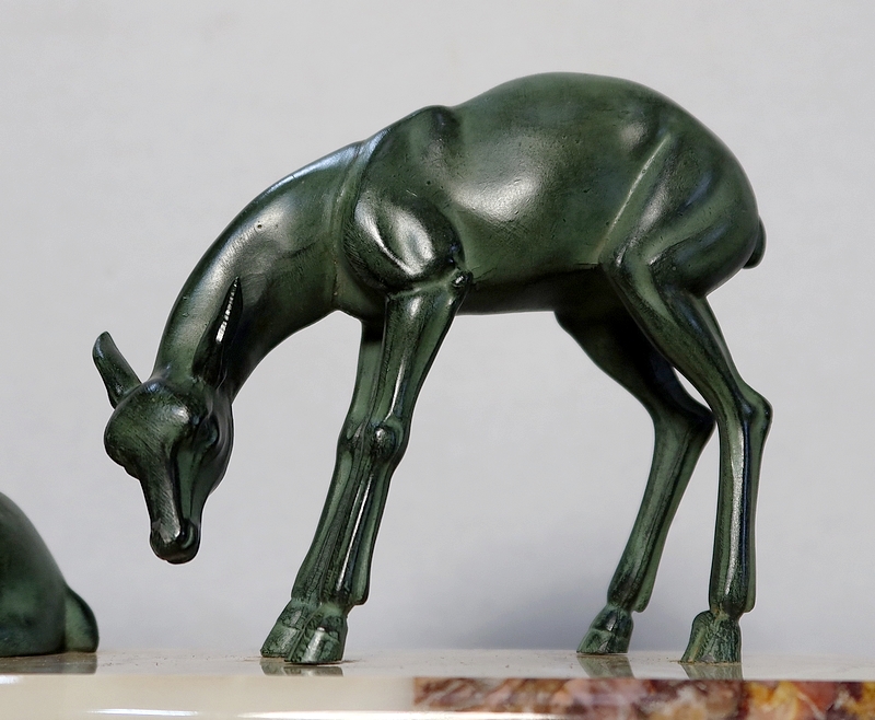 Régule patiné « Cerf et ses biches », Art Déco – Début XXe
