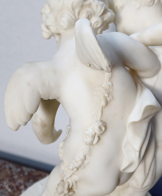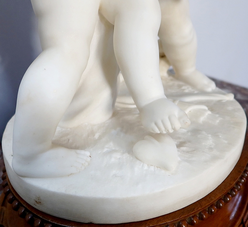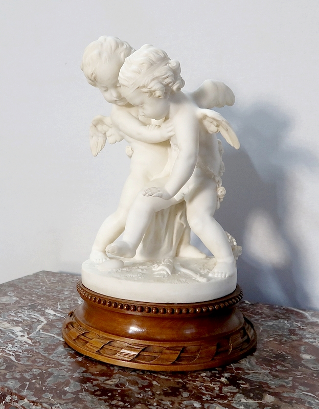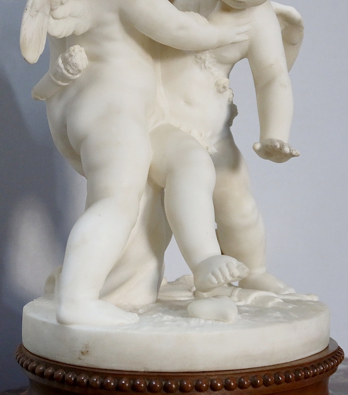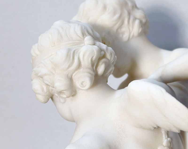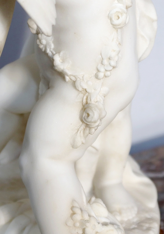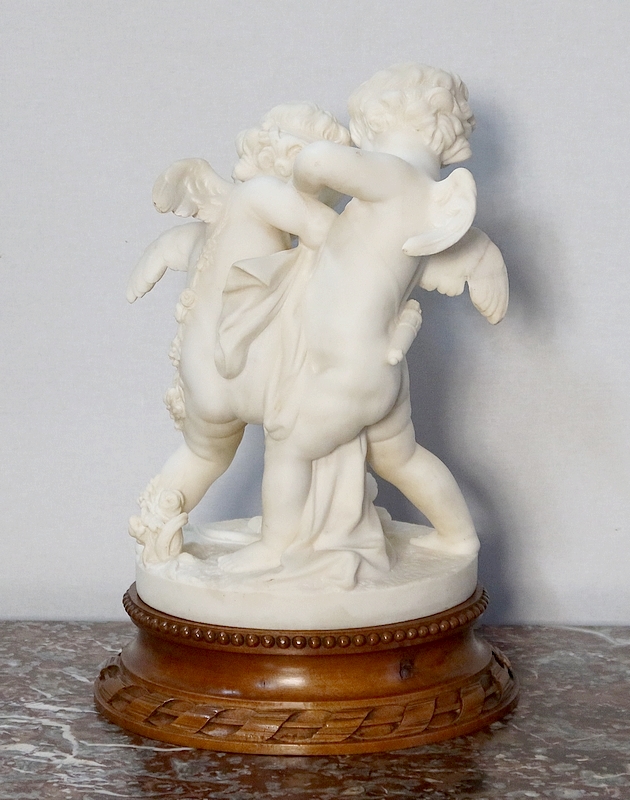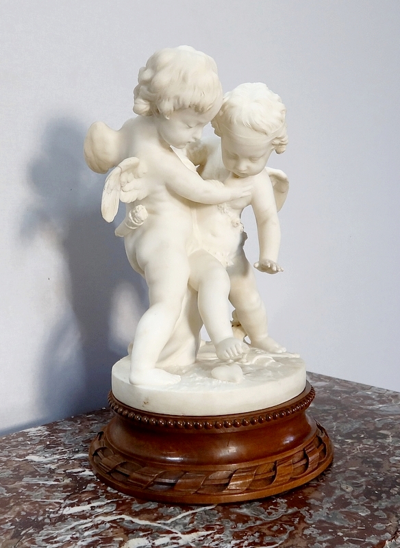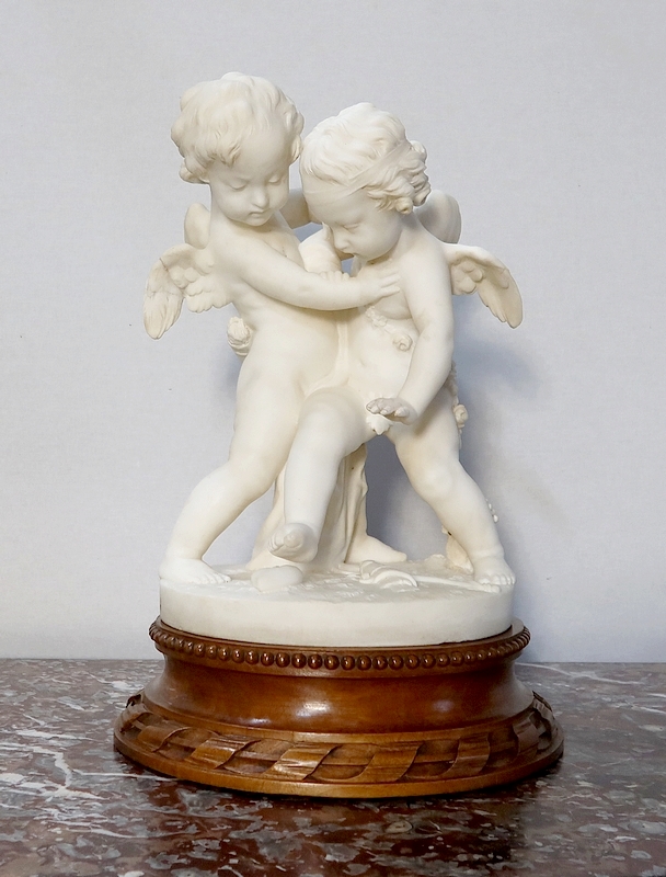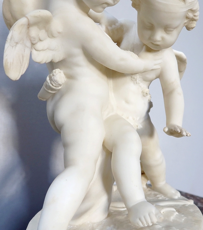Sculpture en Albâtre, « Deux Amours se disputant un Cœur », d’après E-M. Falconet – XIXe
