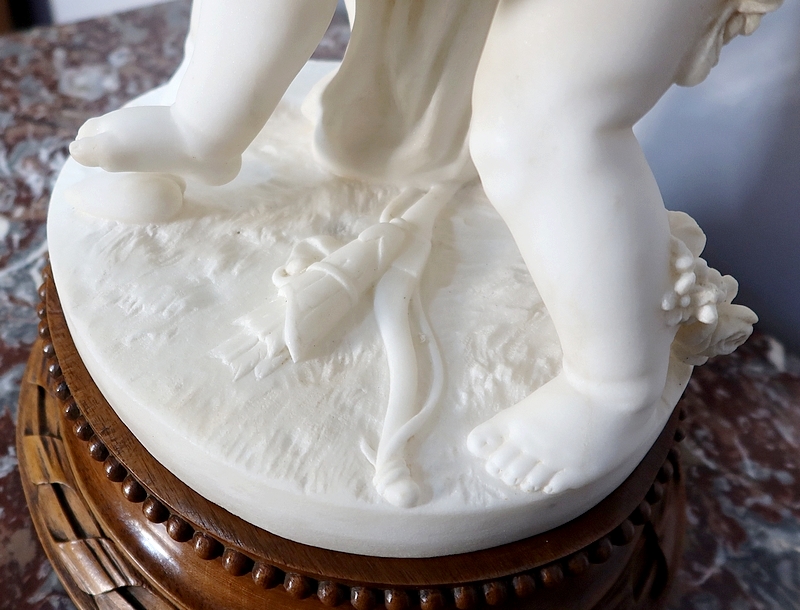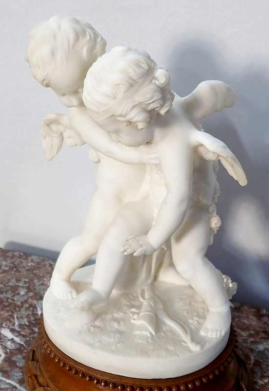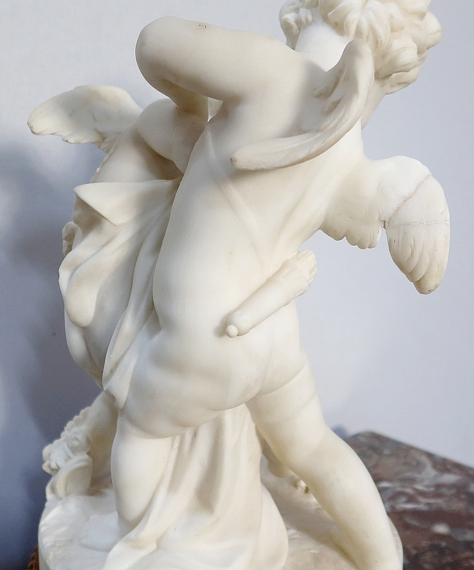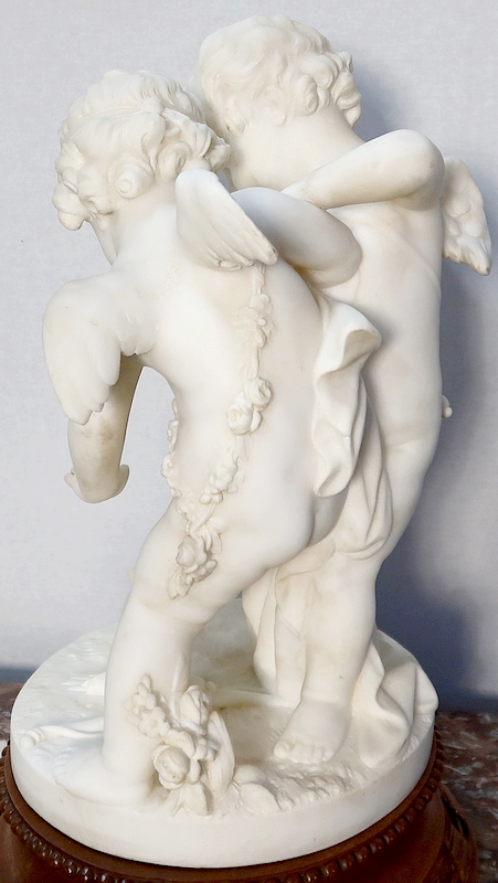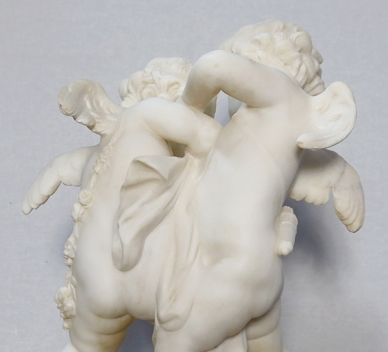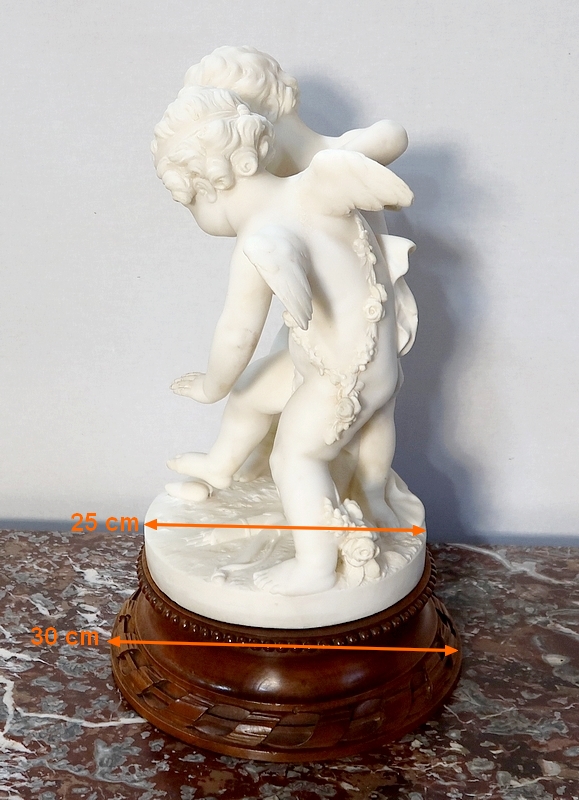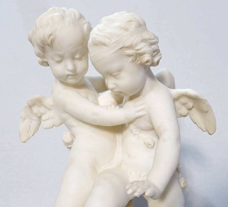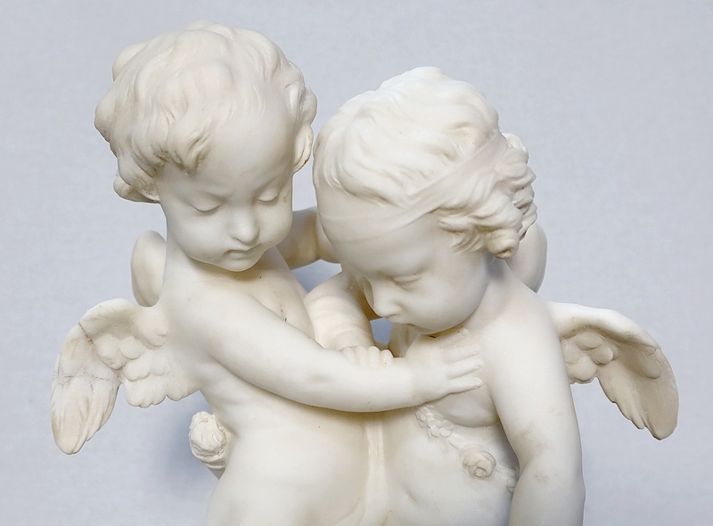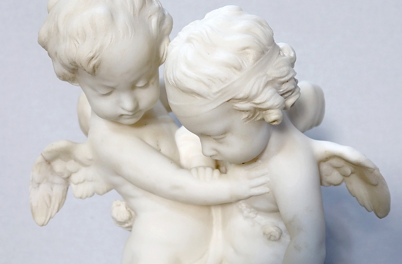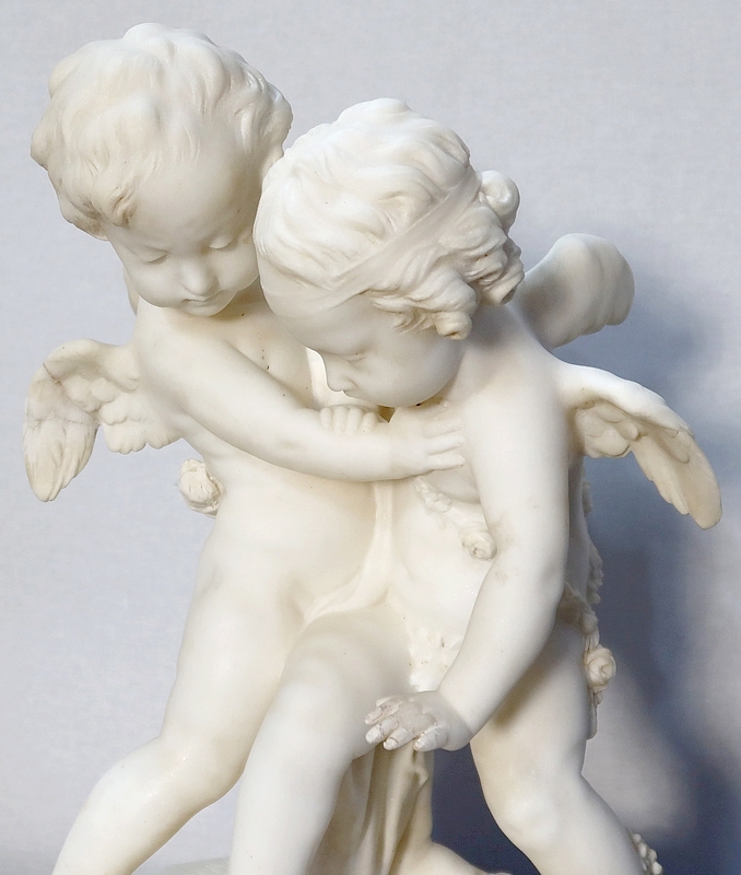 Sculpture en Albâtre, « Deux Amours se disputant un Cœur », d’après E-M. Falconet – XIXe
