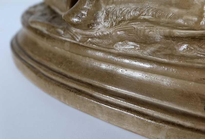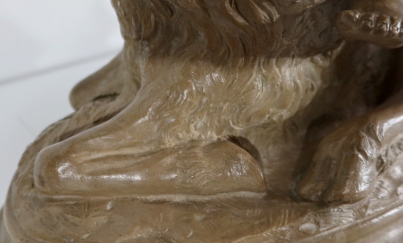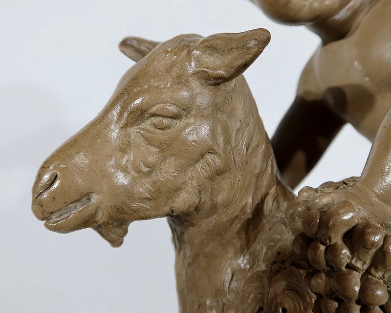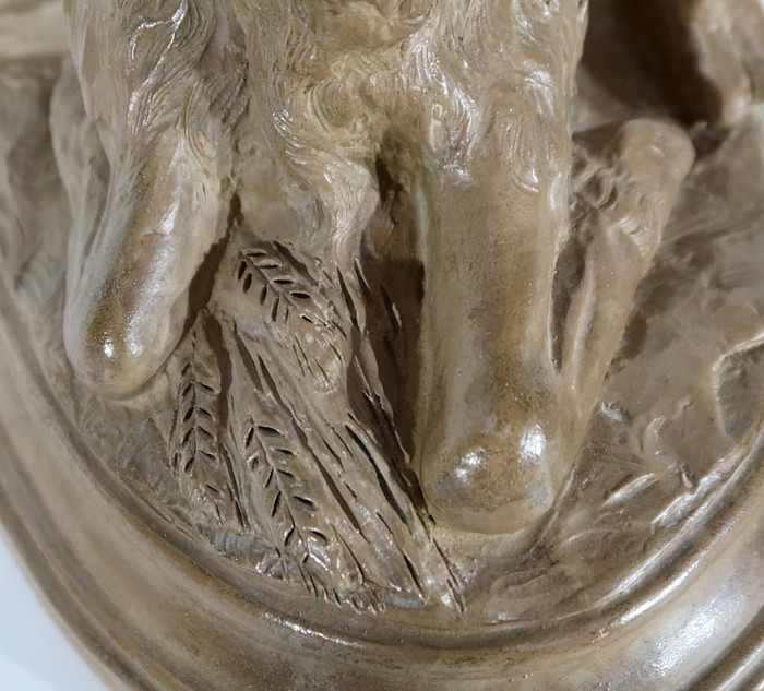On appréciera le réalisme de cette sculpture, ainsi que le mélange d’innocence et d’espièglerie qui se dégage de ses deux protagonistes.
