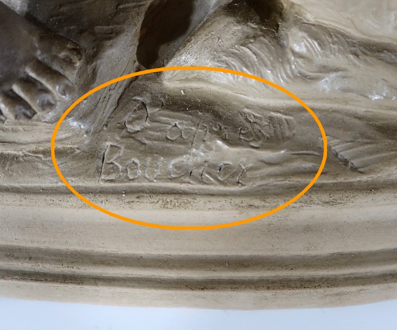 L’œuvre porte l’inscription « d’après Boucher », Alfred, sculpteur français (1850 – 1934), premier maître de Camille Claudel et fondateur à Paris de « La Ruche », pavillon accueillant de jeunes artistes.