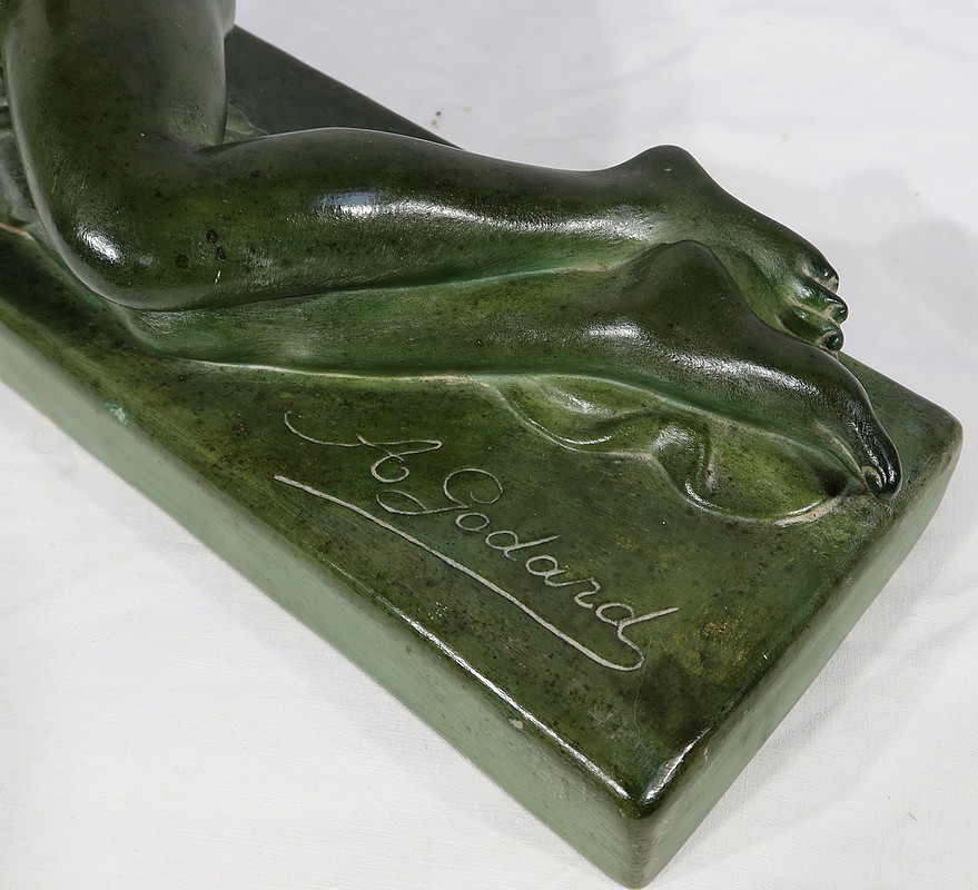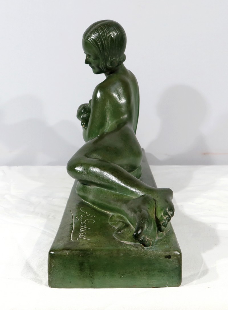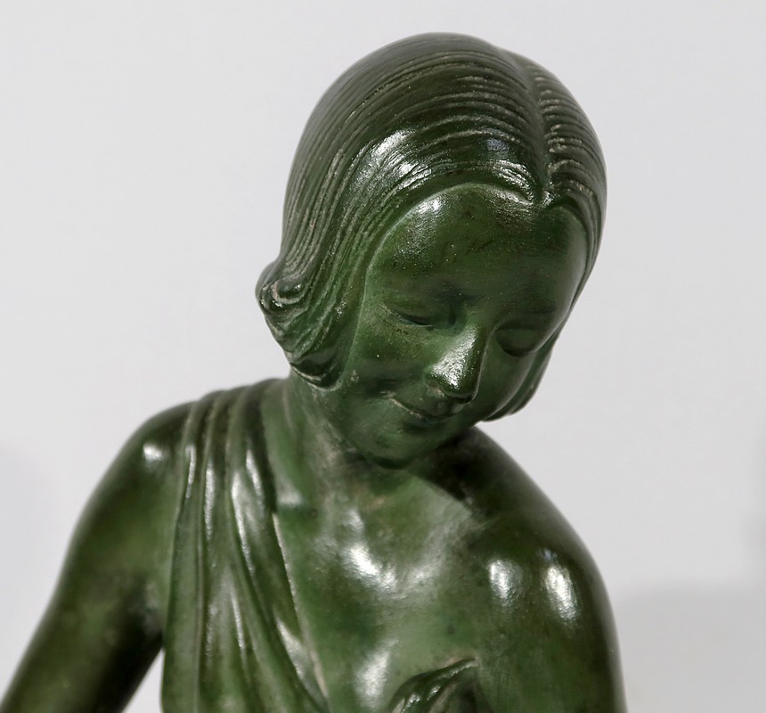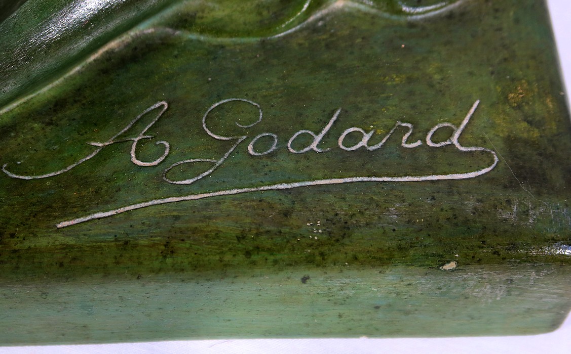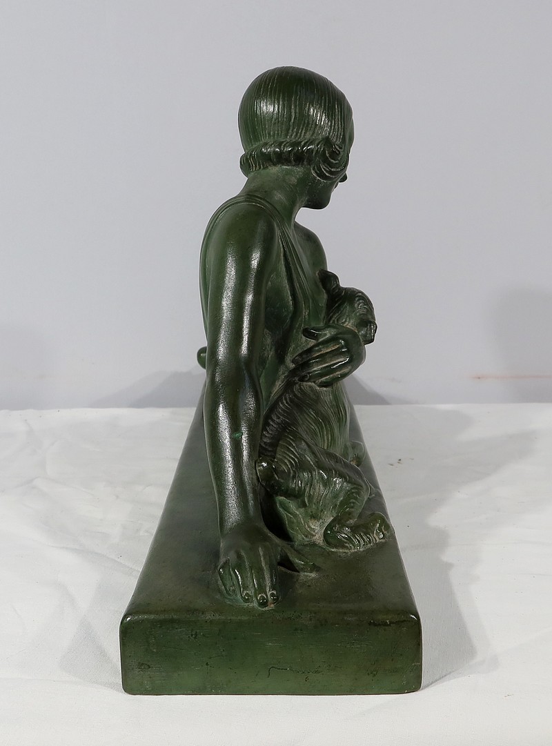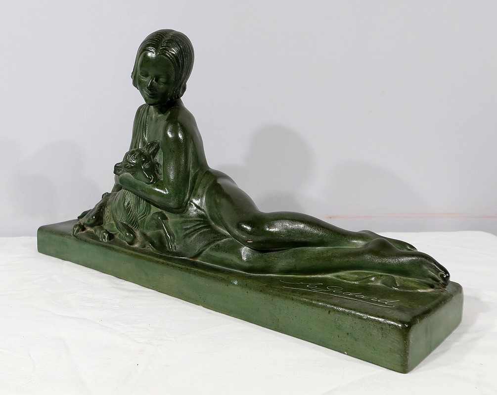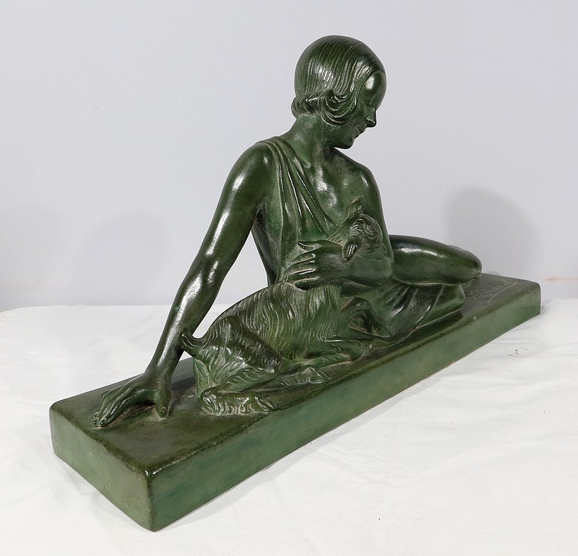 Sculpture «  La Demoiselle et le Chevreau », par A. Godard, Art Déco  – Début XXe