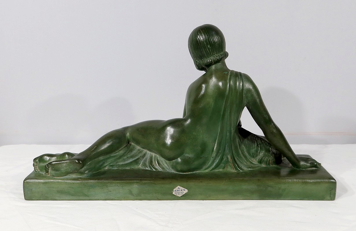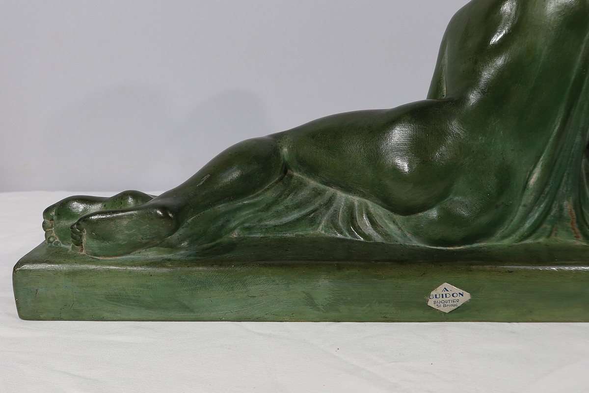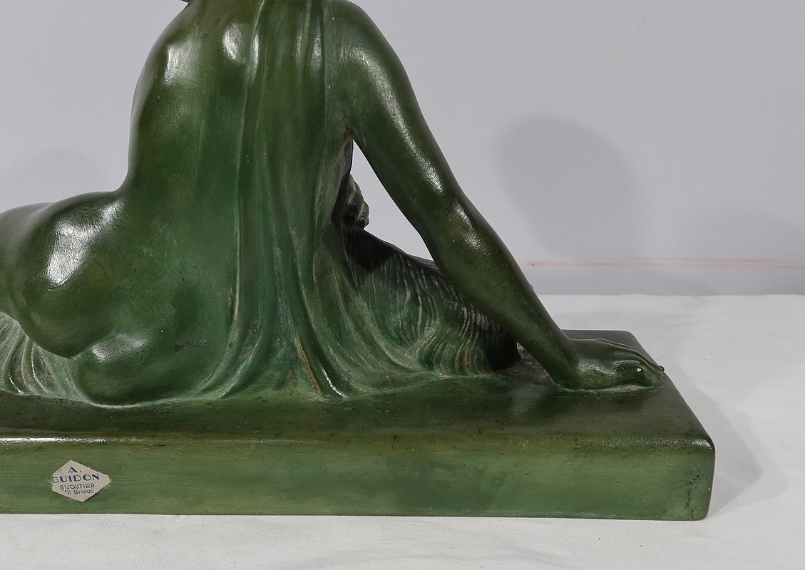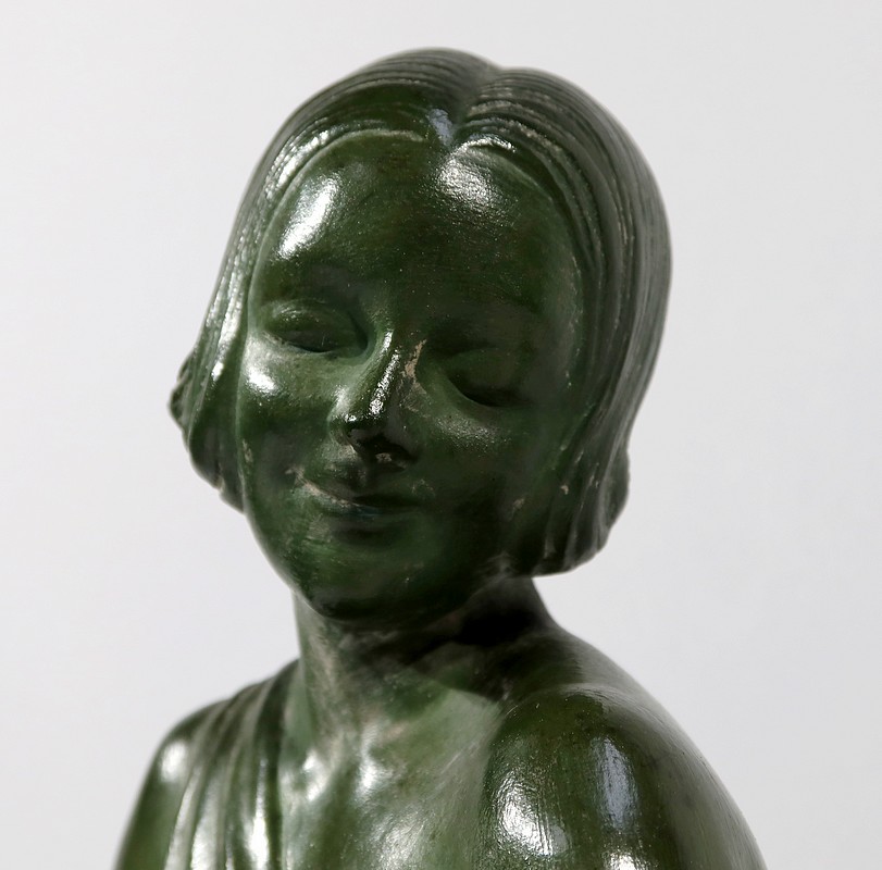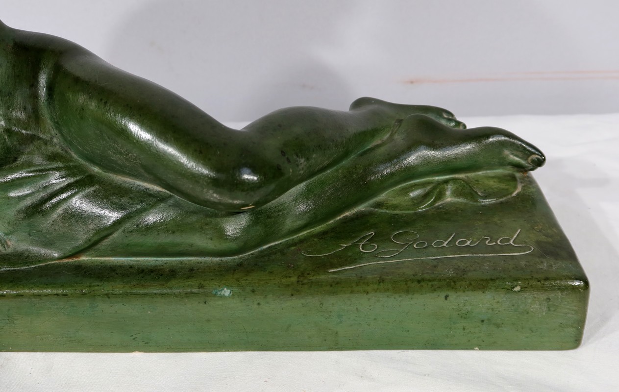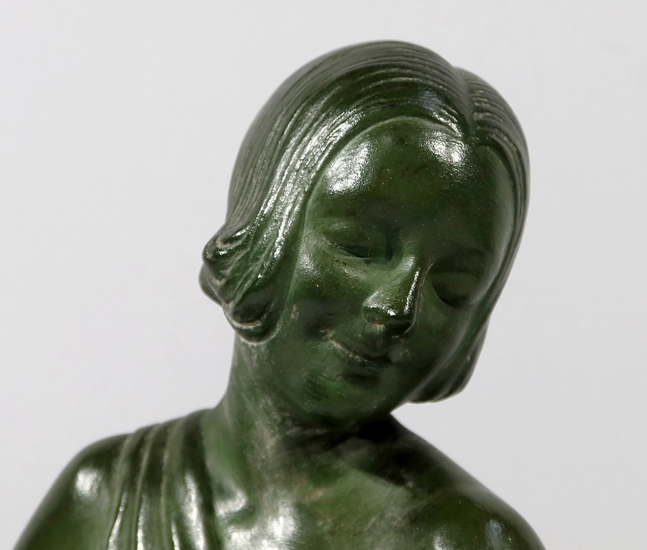 Sculpture «  La Demoiselle et le Chevreau », par A. Godard, Art Déco  – Début XXe