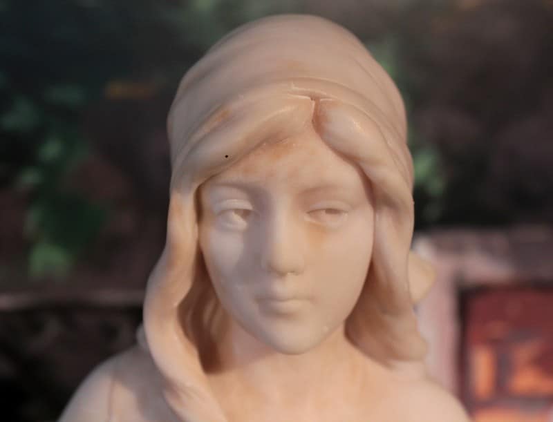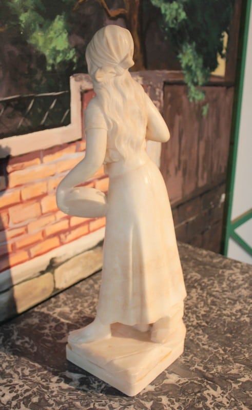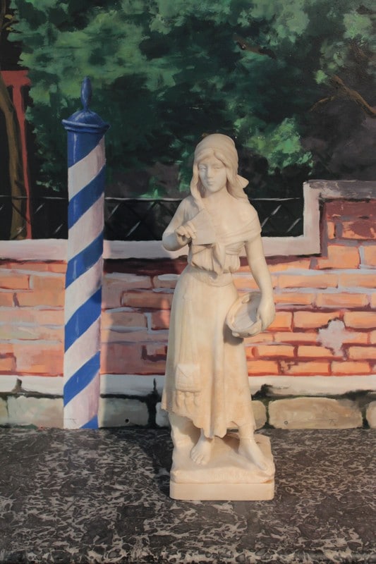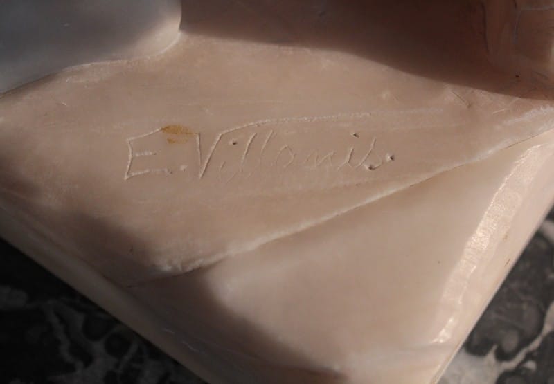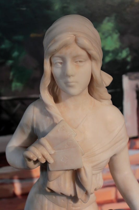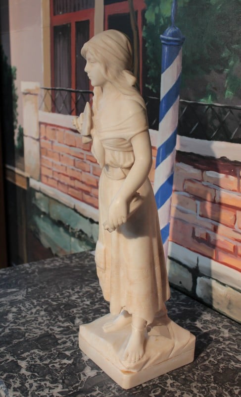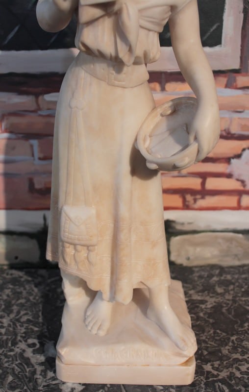 Ravissante Statue d’Esméralda avec son tambourin, en albâtre. Signature de ‘E. Villanis’