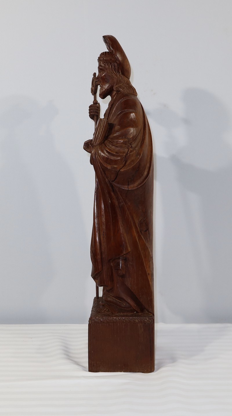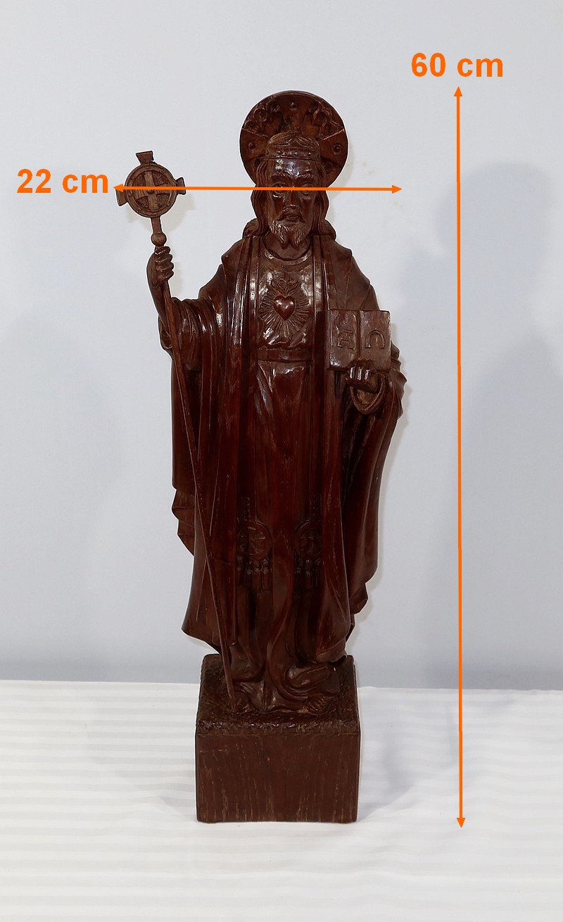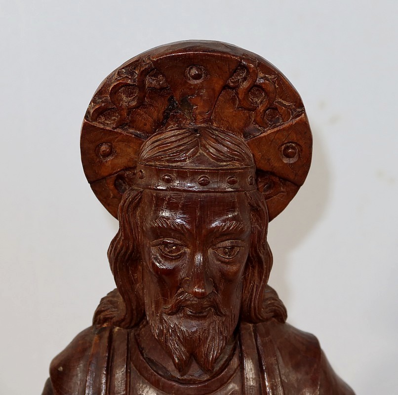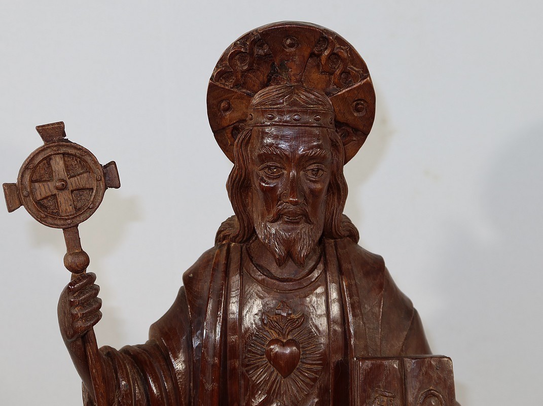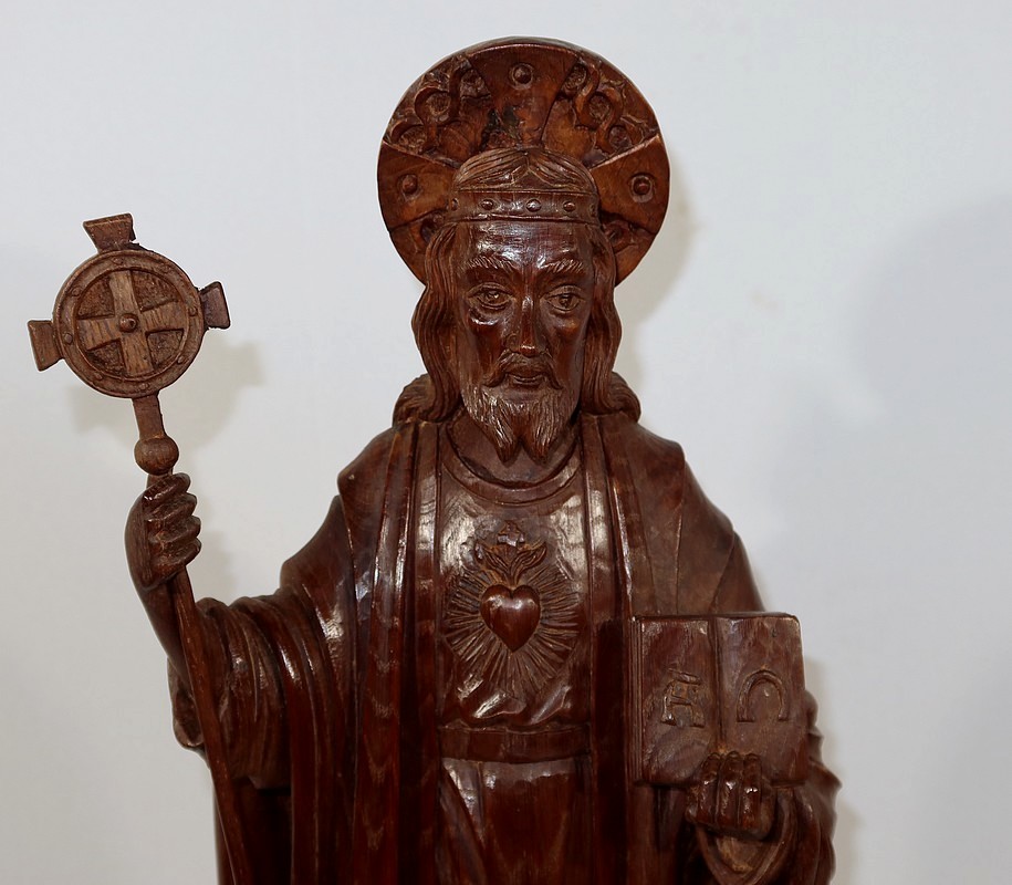 Grande et belle sculpture de Jésus Christ, en bois de châtaignier bénéficiant d’une belle patine.