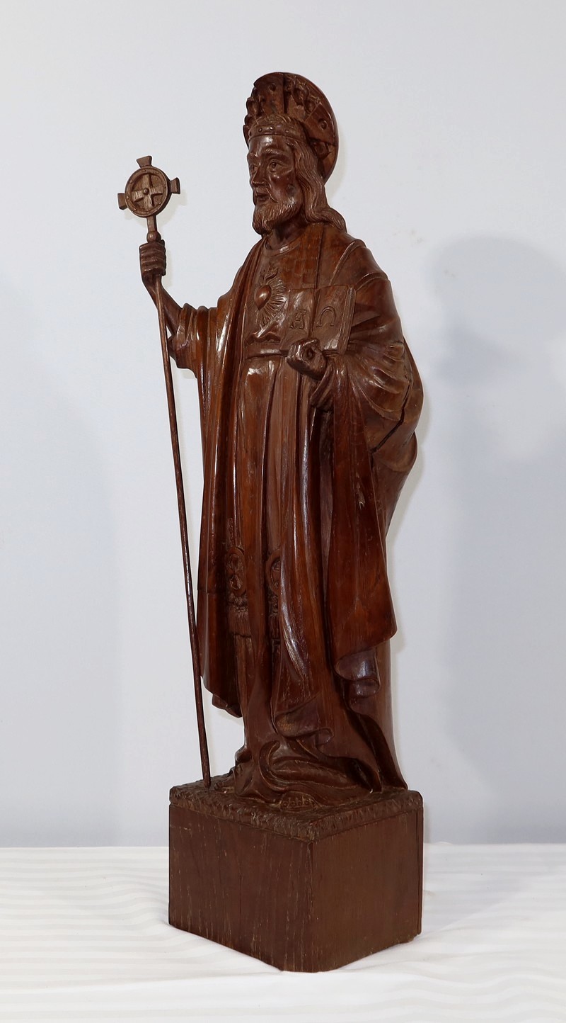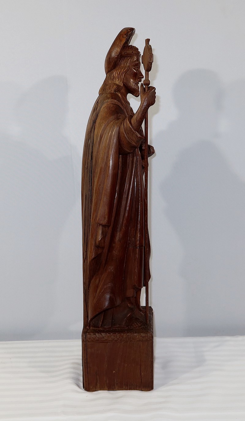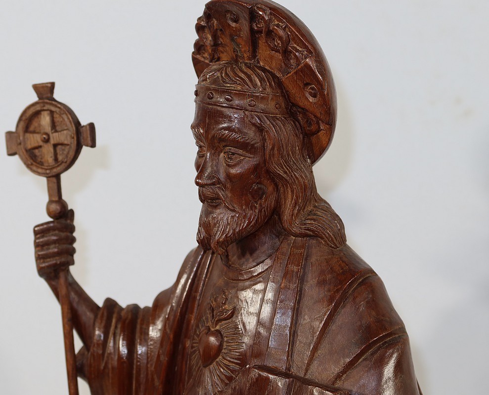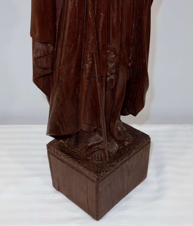 Grande et belle sculpture de Jésus Christ, en bois de châtaignier bénéficiant d’une belle patine.