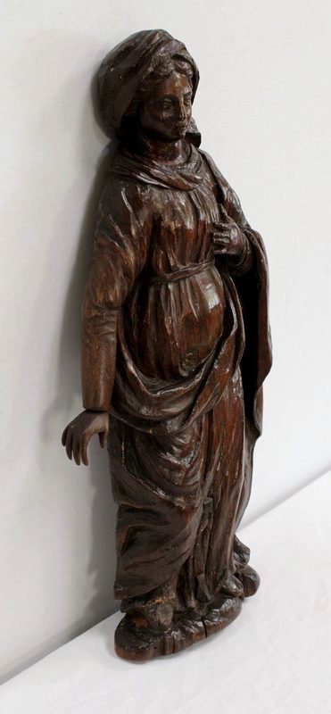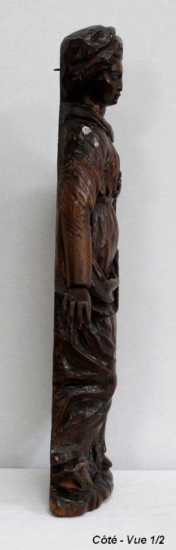 Statue murale en bois sculpté représentant une Sainte.