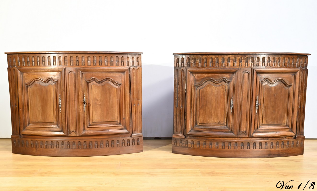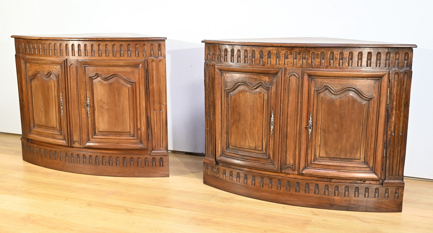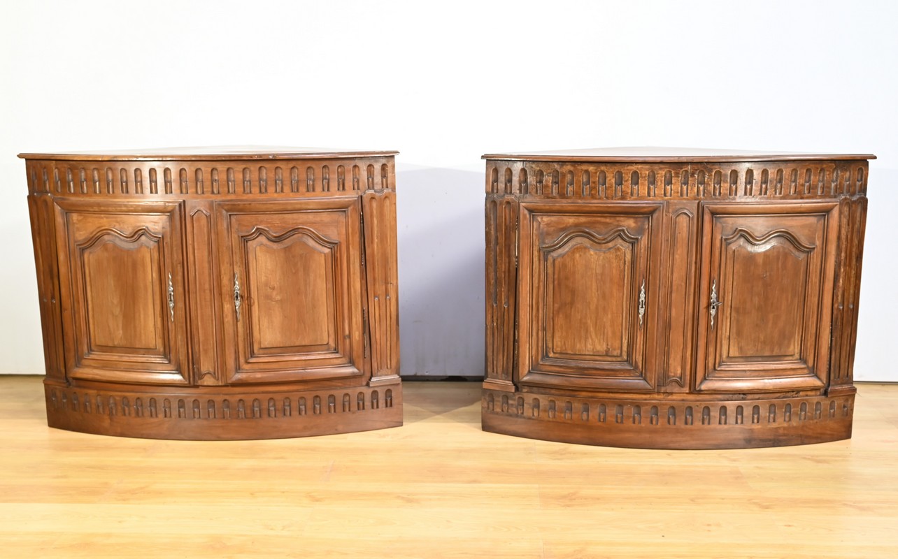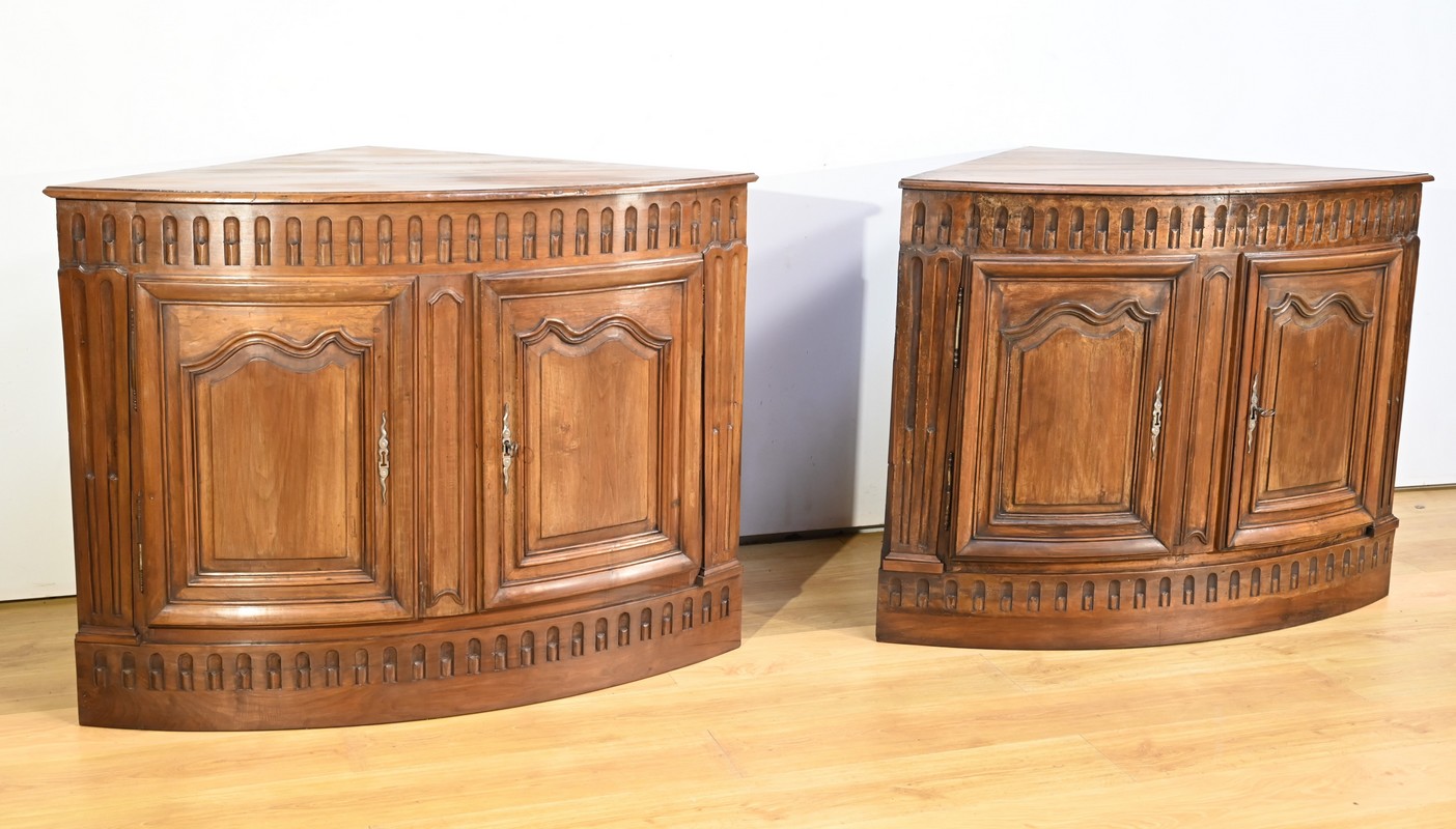 Paire d’Importantes Encoignures de Propriété en Noyer, style Régence – XVIIIe