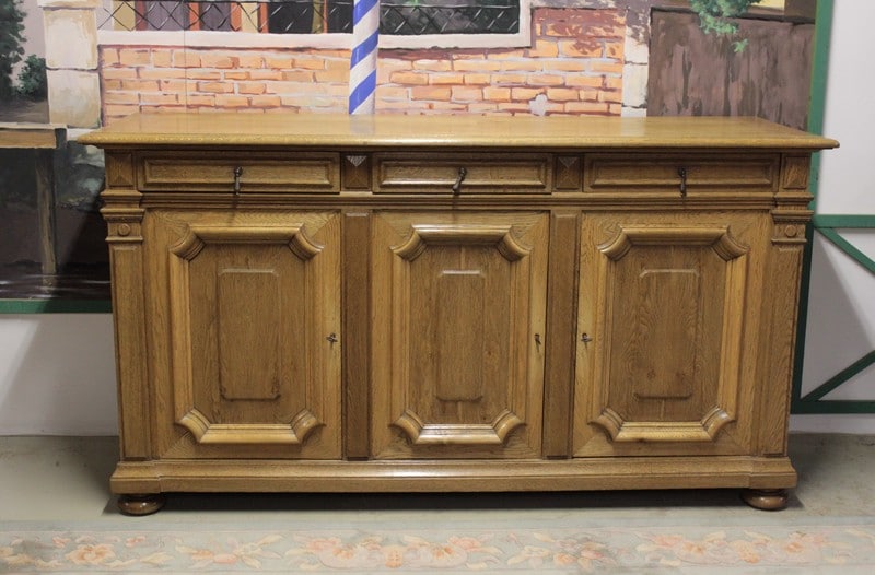 Buffet-enfilade en chêne blond dans le goût Louis XIV ouvrant par 3 portes et 3 tiroirs. Début XXe