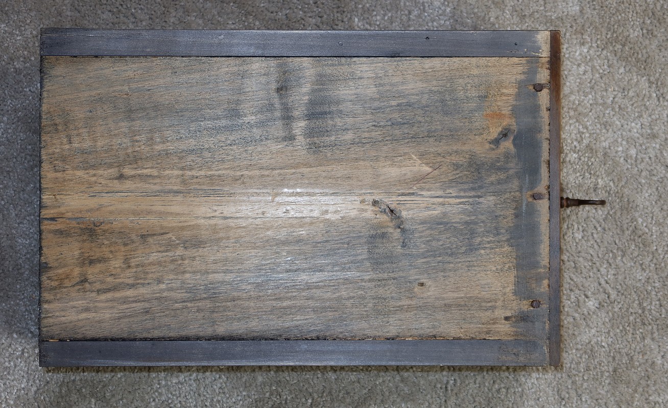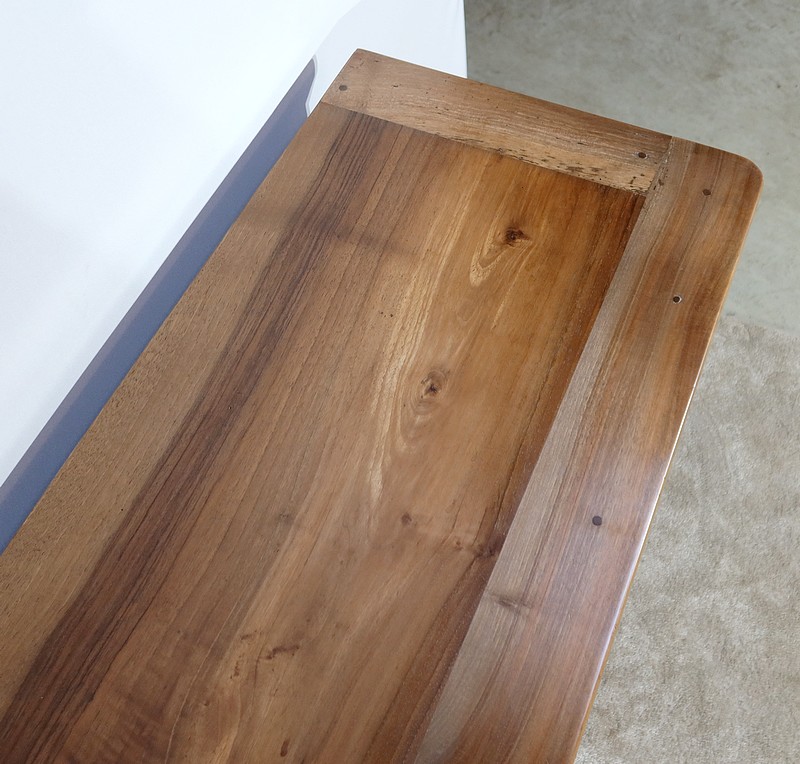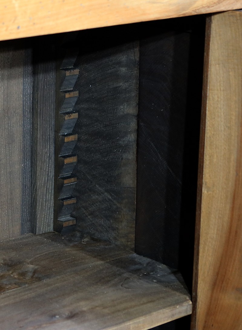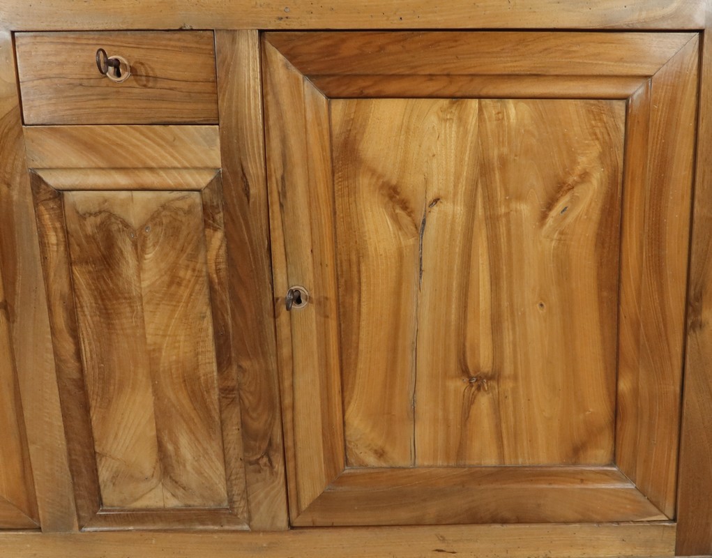 Cette enfilade est sommée d’un dessus à cadre avec un seul panneau bien jointif.