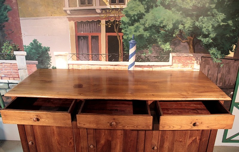Depuis 50 ans, chaque pièce de mobilier est minutieusement restaurée avec passion dans notre atelier d’ébénisterie.