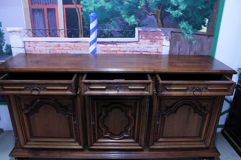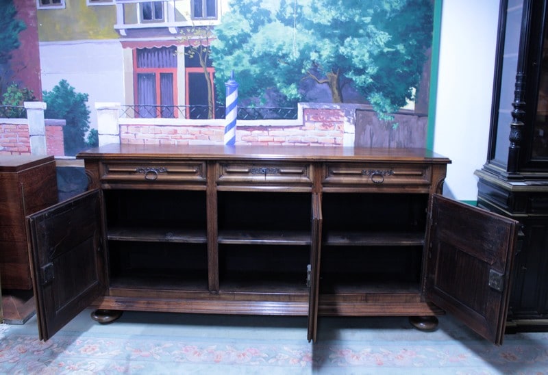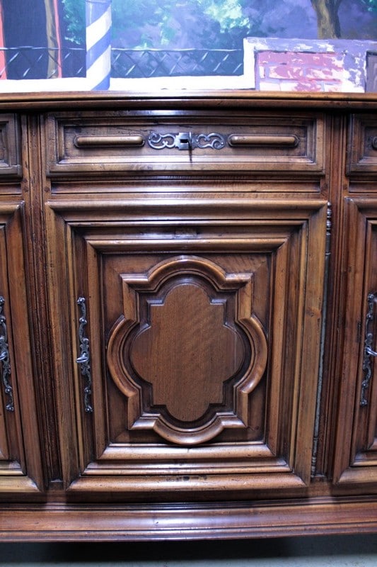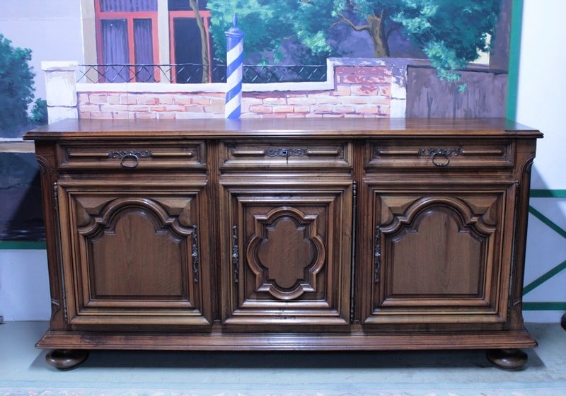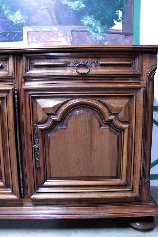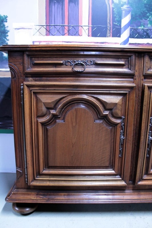 Enfilade Louis XIV en noyer ouvrant par 3 portes et 3 tiroirs, de conception XIXe avec des éléments de portes du XVIIIe.