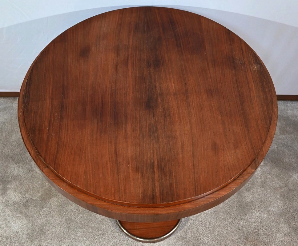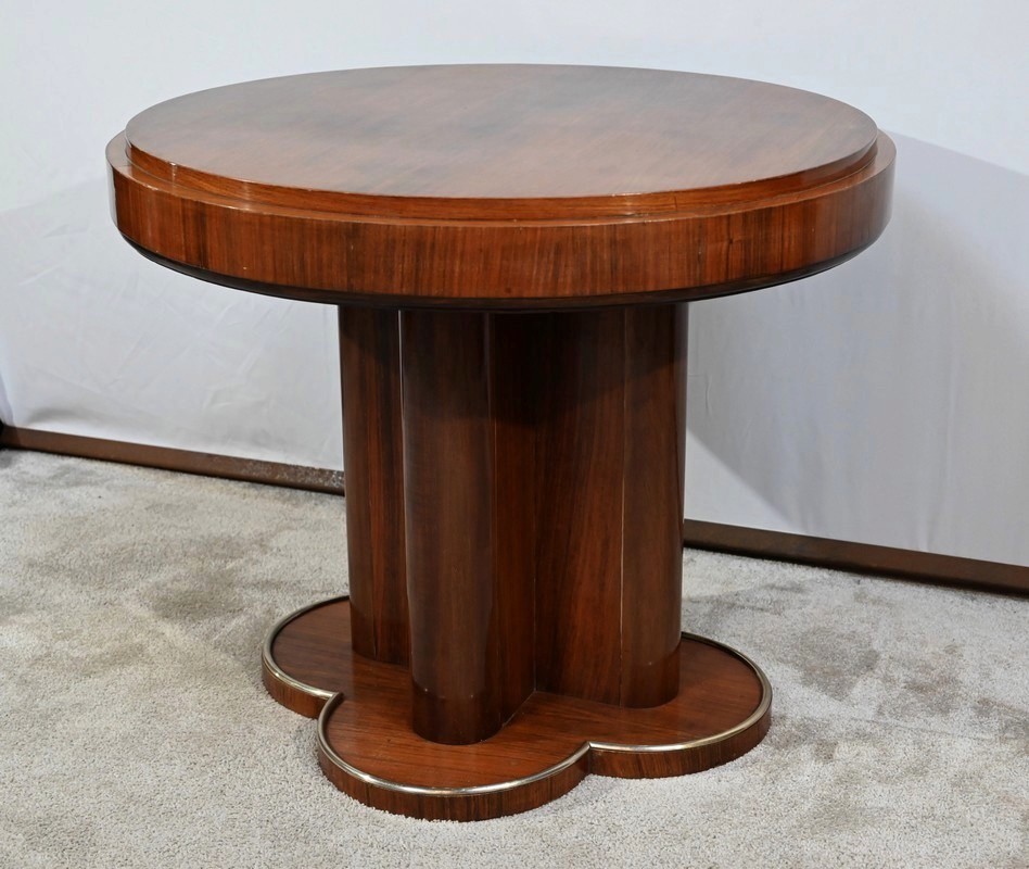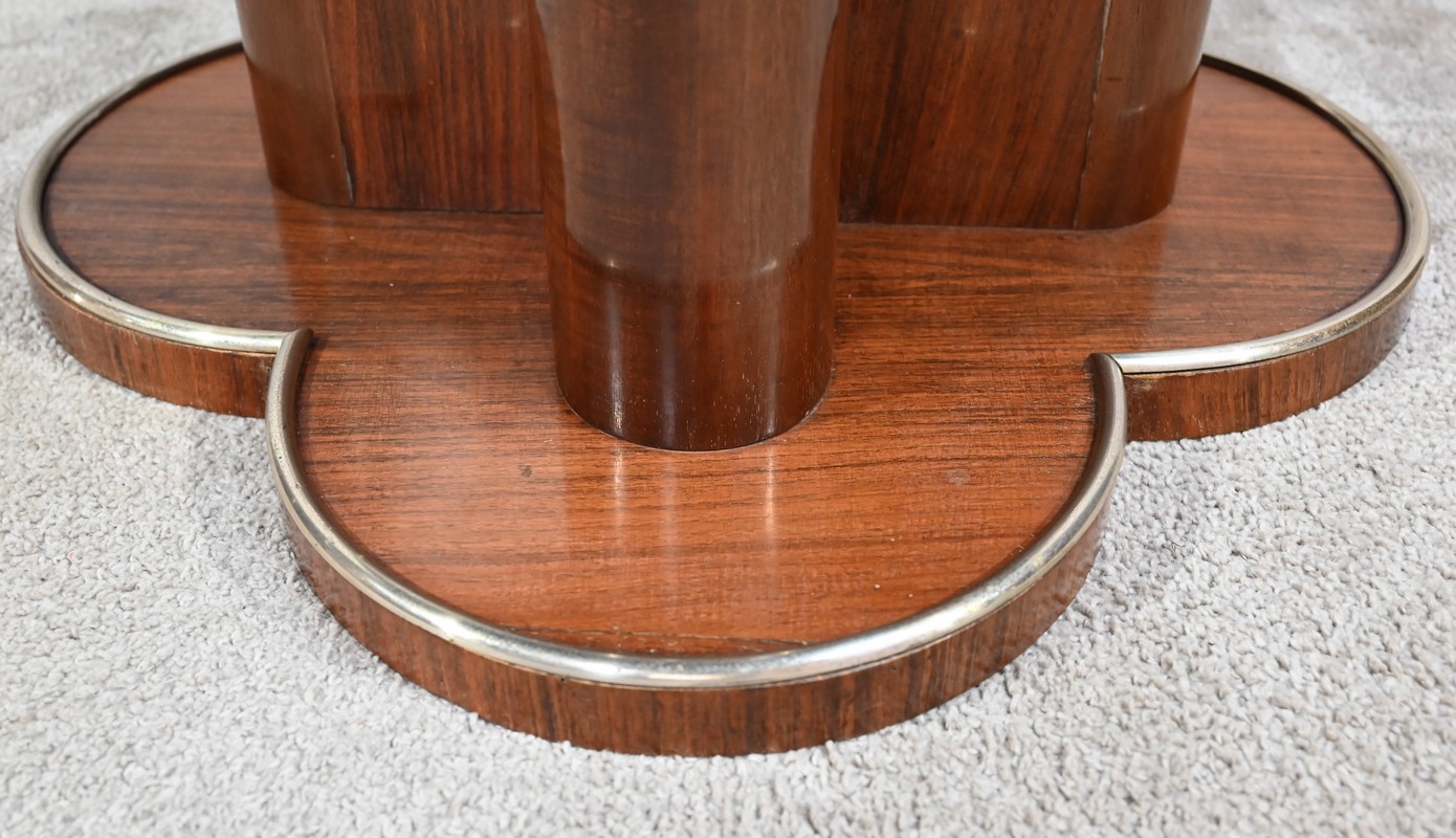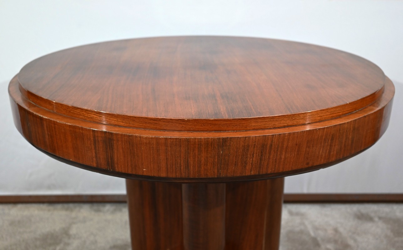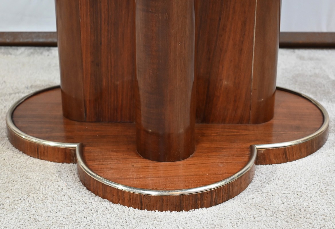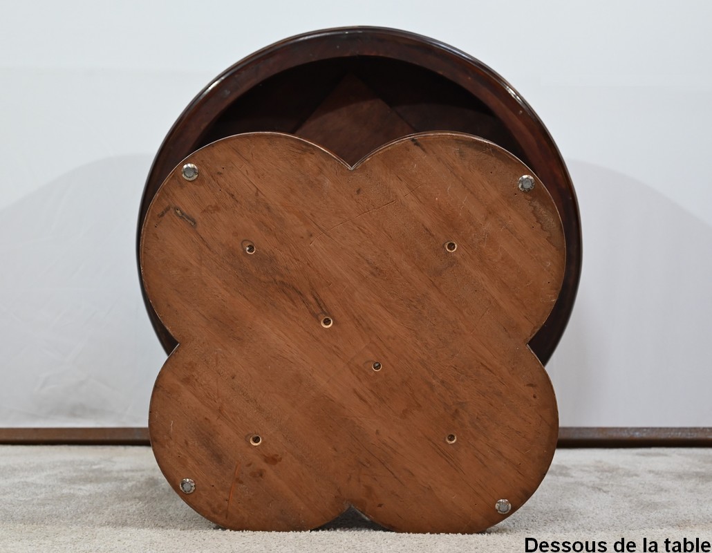 Guéridon en acajou, Art Déco, attribué au célèbre créateur et décorateur français Jules-Emile Leleu (1883-1961). Décoré Officier de l’Ordre des Arts et des Lettres, Leleu est connu pour avoir notamment réalisé l’ameublement de grands paquebots français et de bâtiments administratifs à travers le monde.