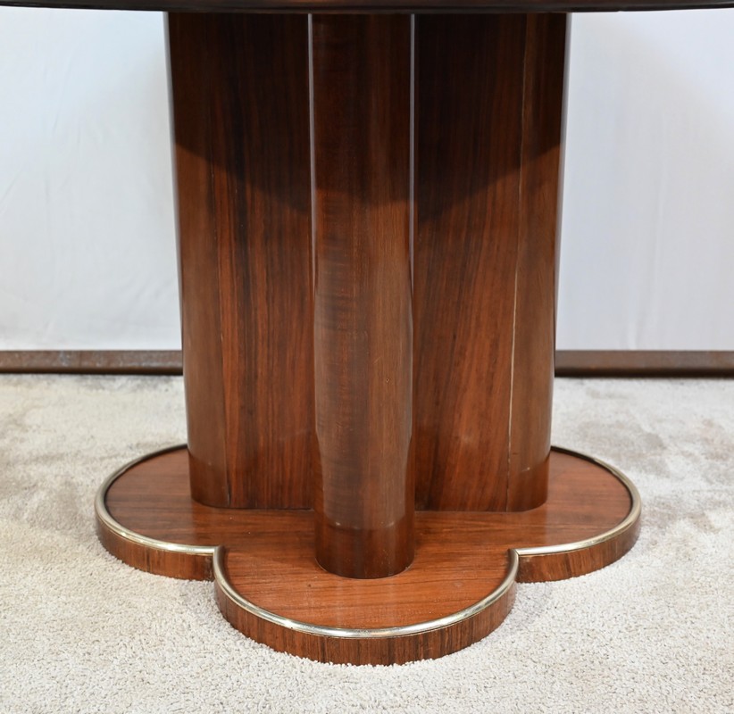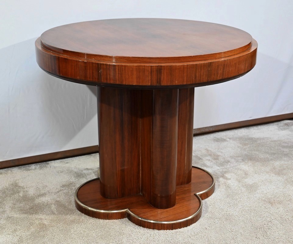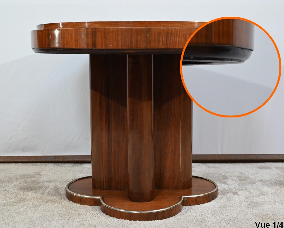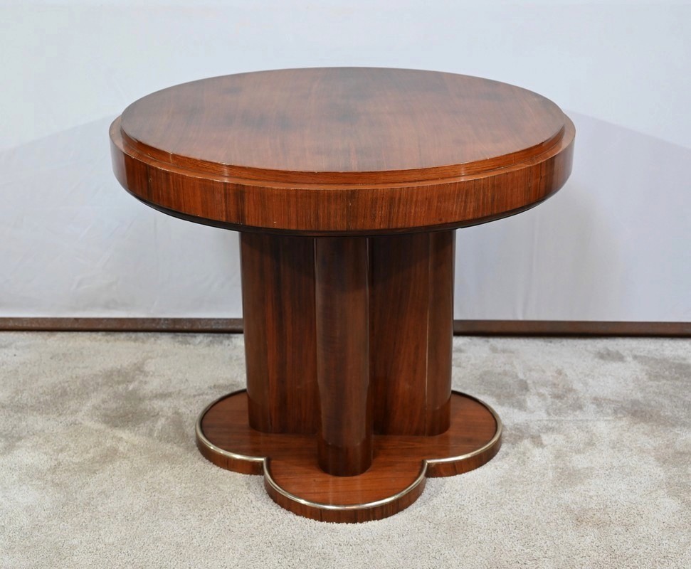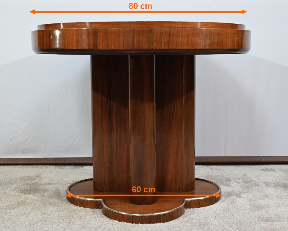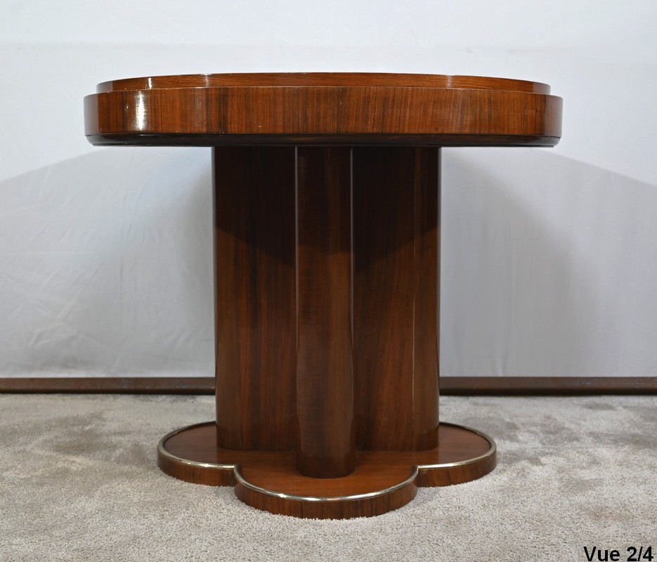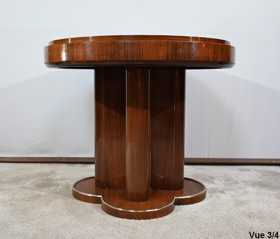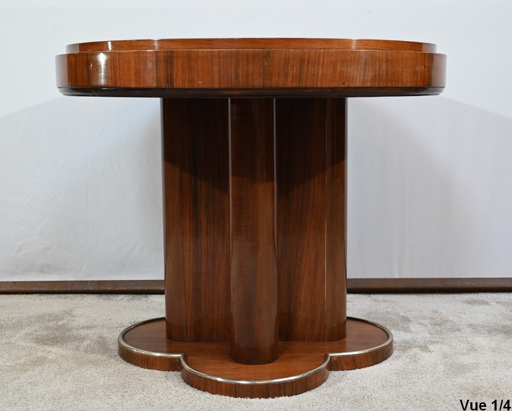 Guéridon en acajou, Art Déco, attribué au célèbre créateur et décorateur français Jules-Emile Leleu (1883-1961). Décoré Officier de l’Ordre des Arts et des Lettres, Leleu est connu pour avoir notamment réalisé l’ameublement de grands paquebots français et de bâtiments administratifs à travers le monde.