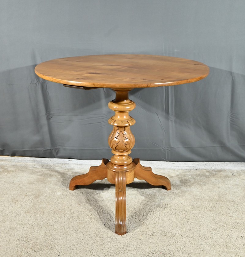 Guéridon en merisier présentant une teinte chaude et un fini brillant mettant en valeur son caractère antique.