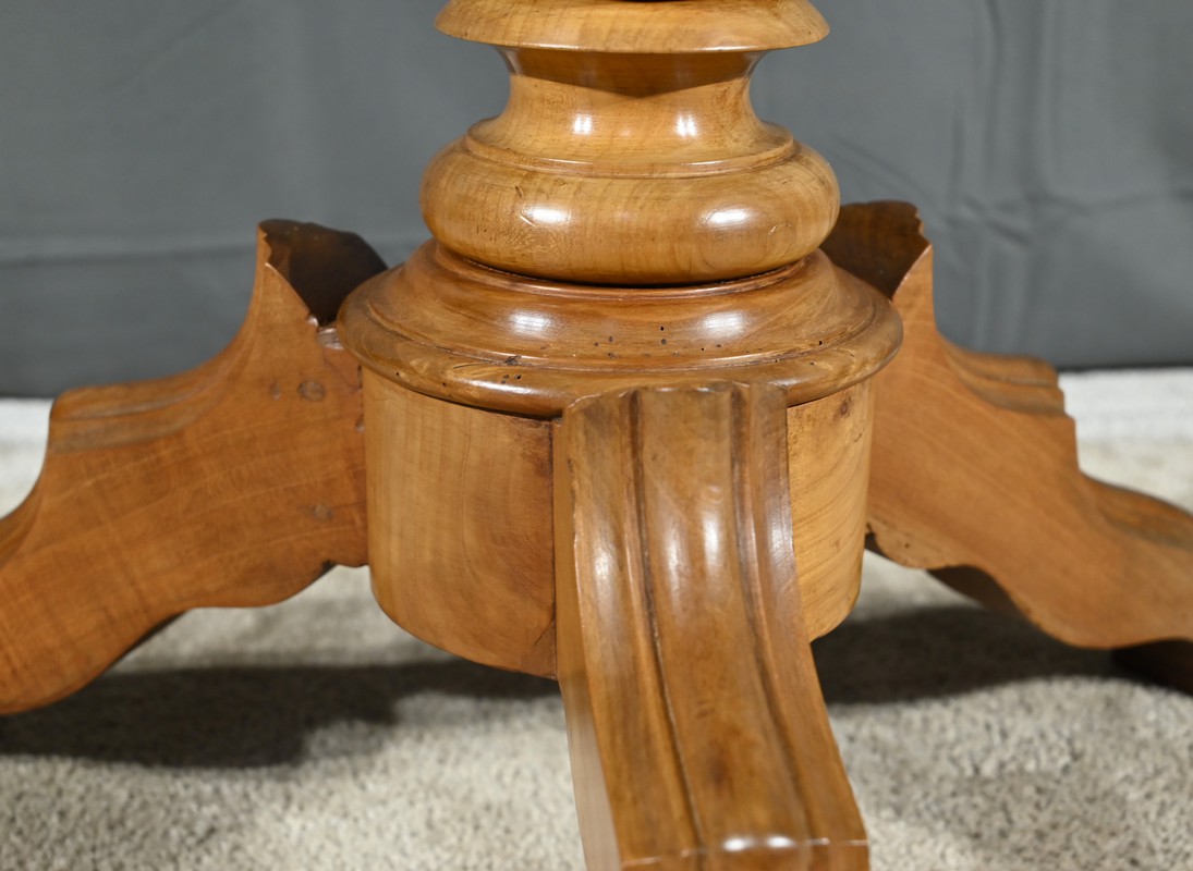 Ce guéridon, ou table pouvant accueillir quatre couverts, n’est pas seulement un meuble, mais aussi un témoin de l’artisanat et du design de son époque. Il reflète les préférences esthétiques et les techniques de travail du bois de la période Louis-Philippe.