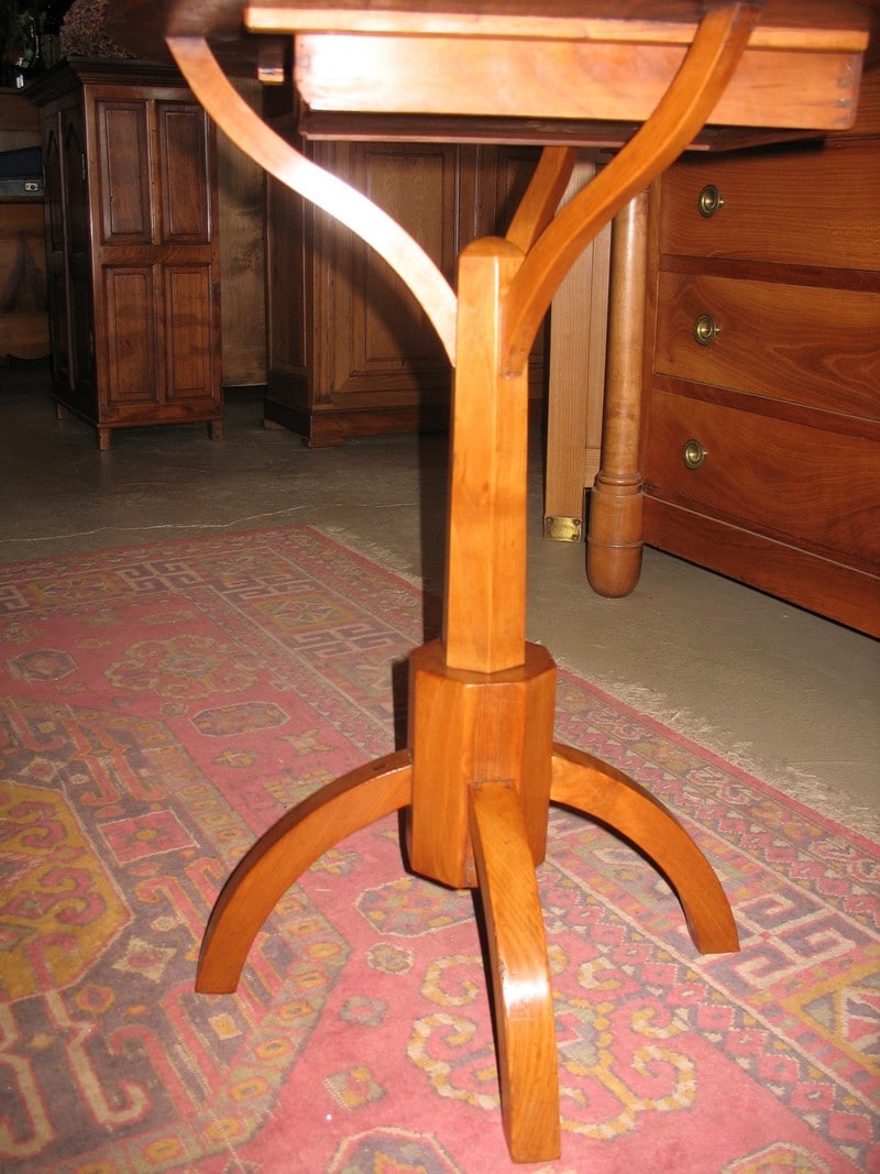 Original Guéridon en merisier reposant sur 4 pieds arqués et ouvrant par 1 petit tiroir.