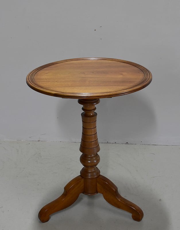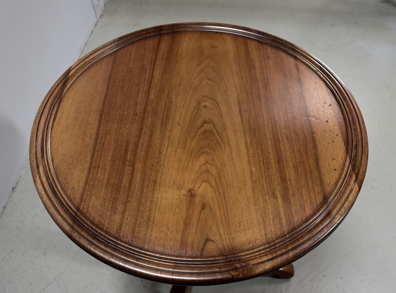 Guéridon rond Louis-Philippe de salon en noyer blond reposant sur un piètement tripode.
