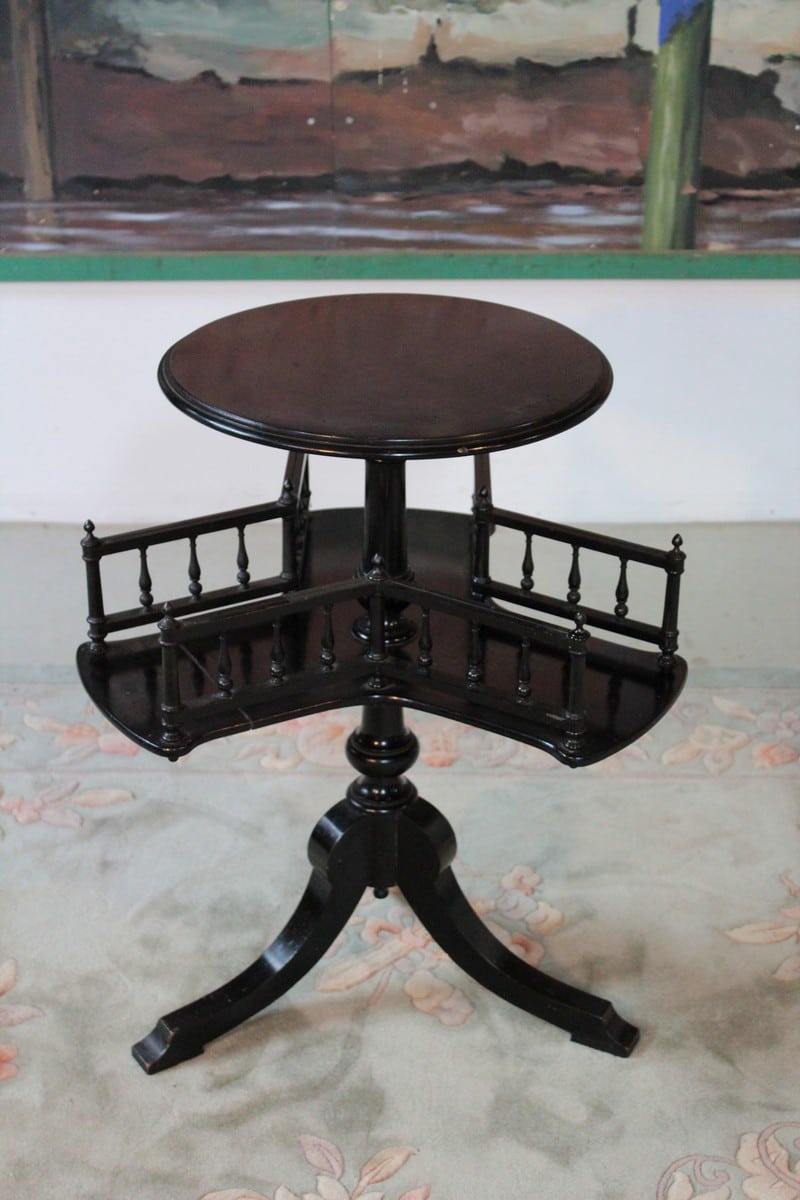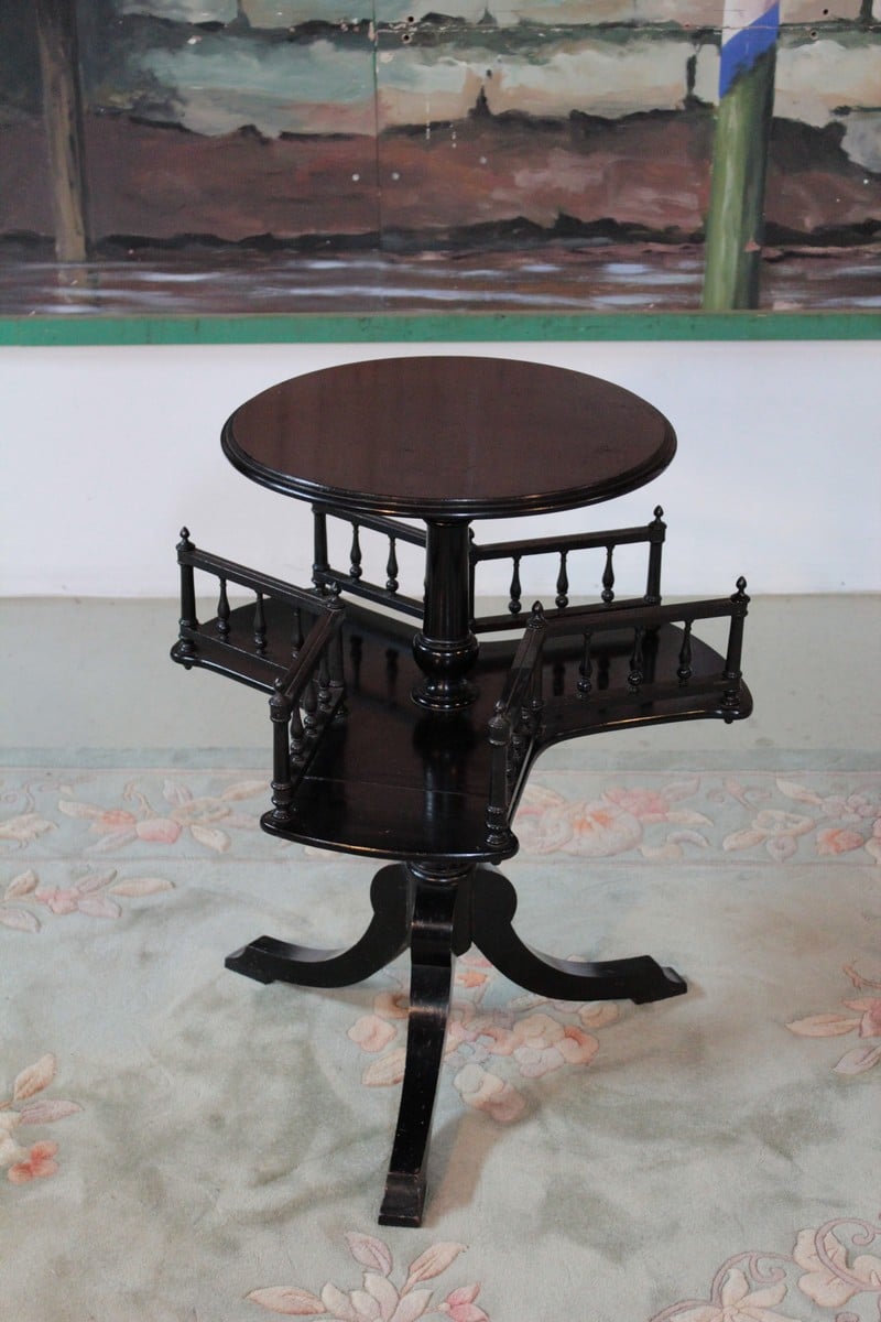 Petit guéridon porte-revues NAPOLÉON III en bois noirci reposant sur un pied tripode. Fin XIXe