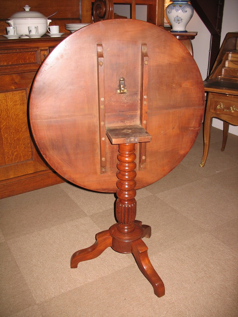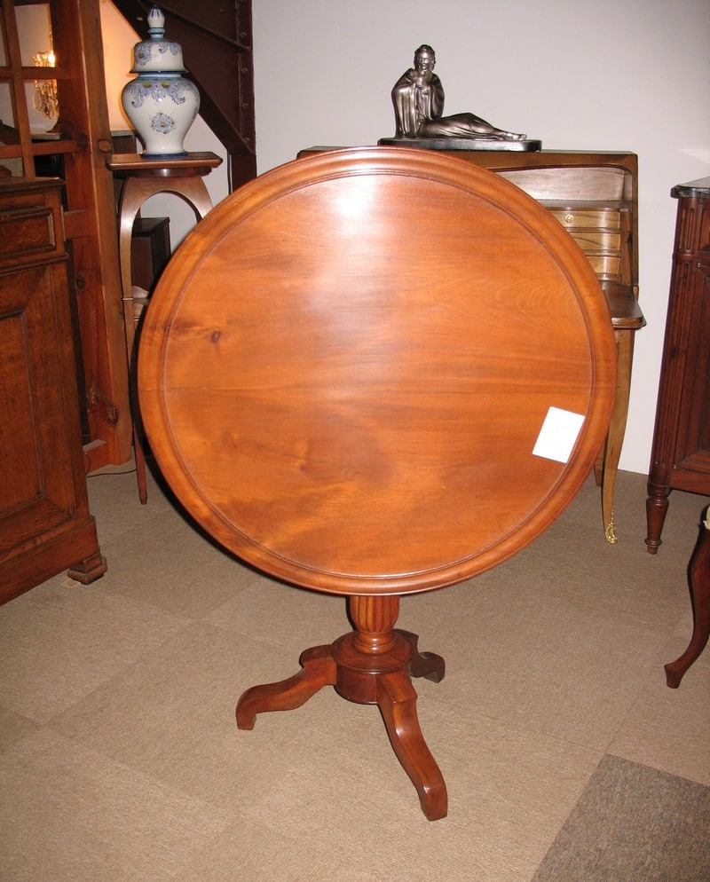 Guéridon Restauration en Acajou de Cuba. Pied tripode et plateau basculant.