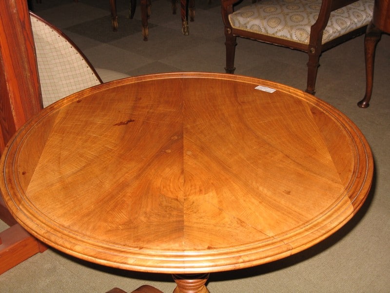 Guéridon Restauration en Noyer blond. Pied tripode. Dessus bois.