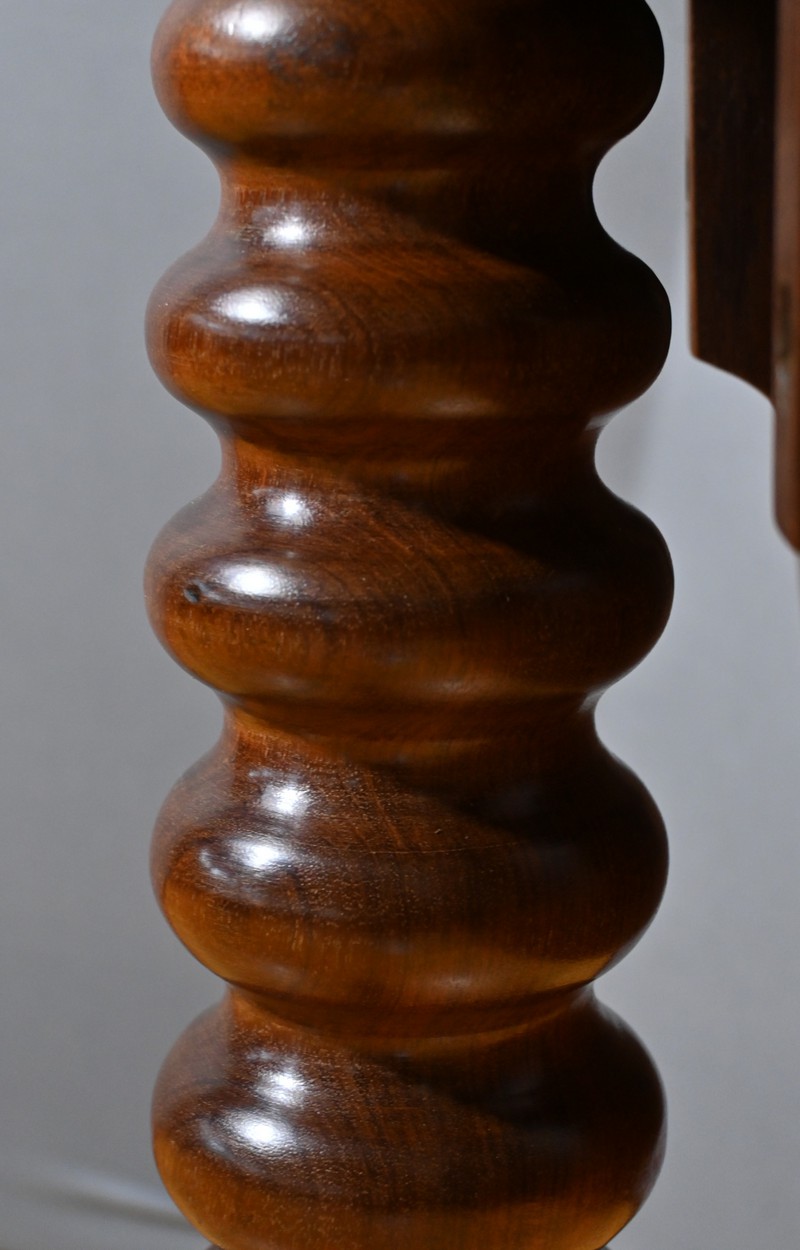 Le fût central, tourné à bobine puis ogival avec godron, ajoute une touche de sophistication et de raffinement à l’ensemble.