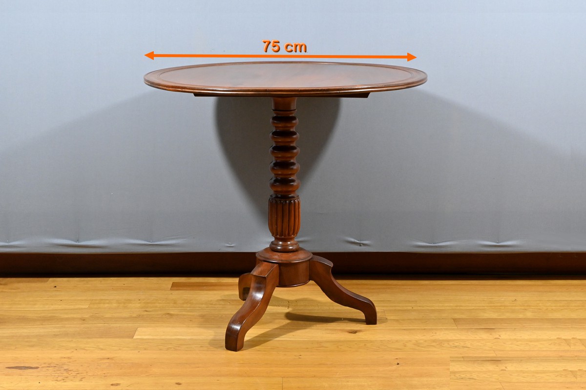Ce guéridon à système en acajou, d’époque Louis Philippe et datant du milieu du XIXe siècle, est une pièce de mobilier ingénieuse et élégante.