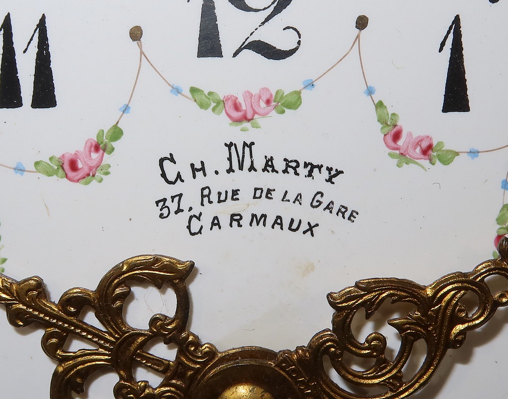 Le cadran est signé « Ch. Marty – 37, rue de la gare – Carmaux – Just ».