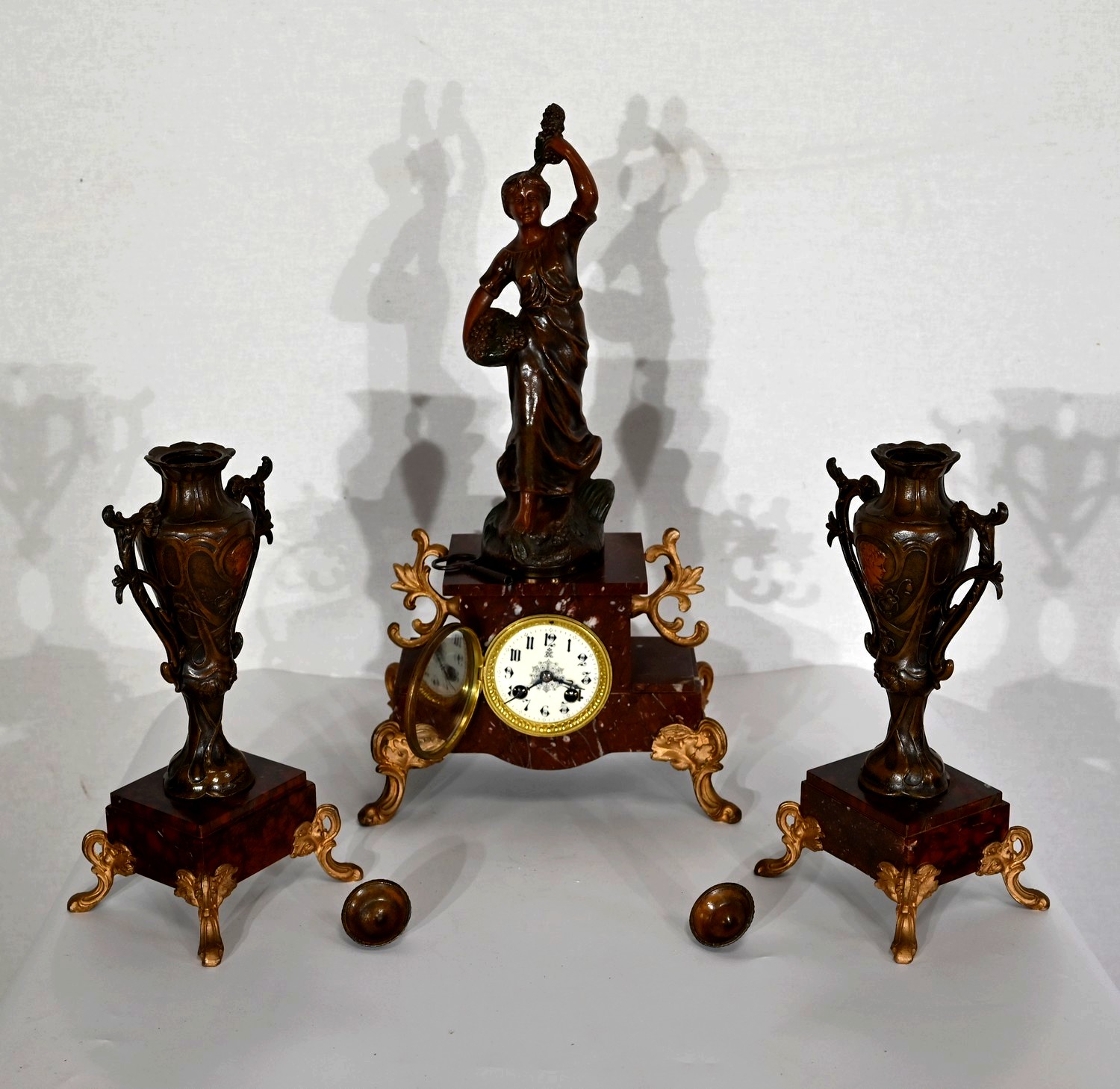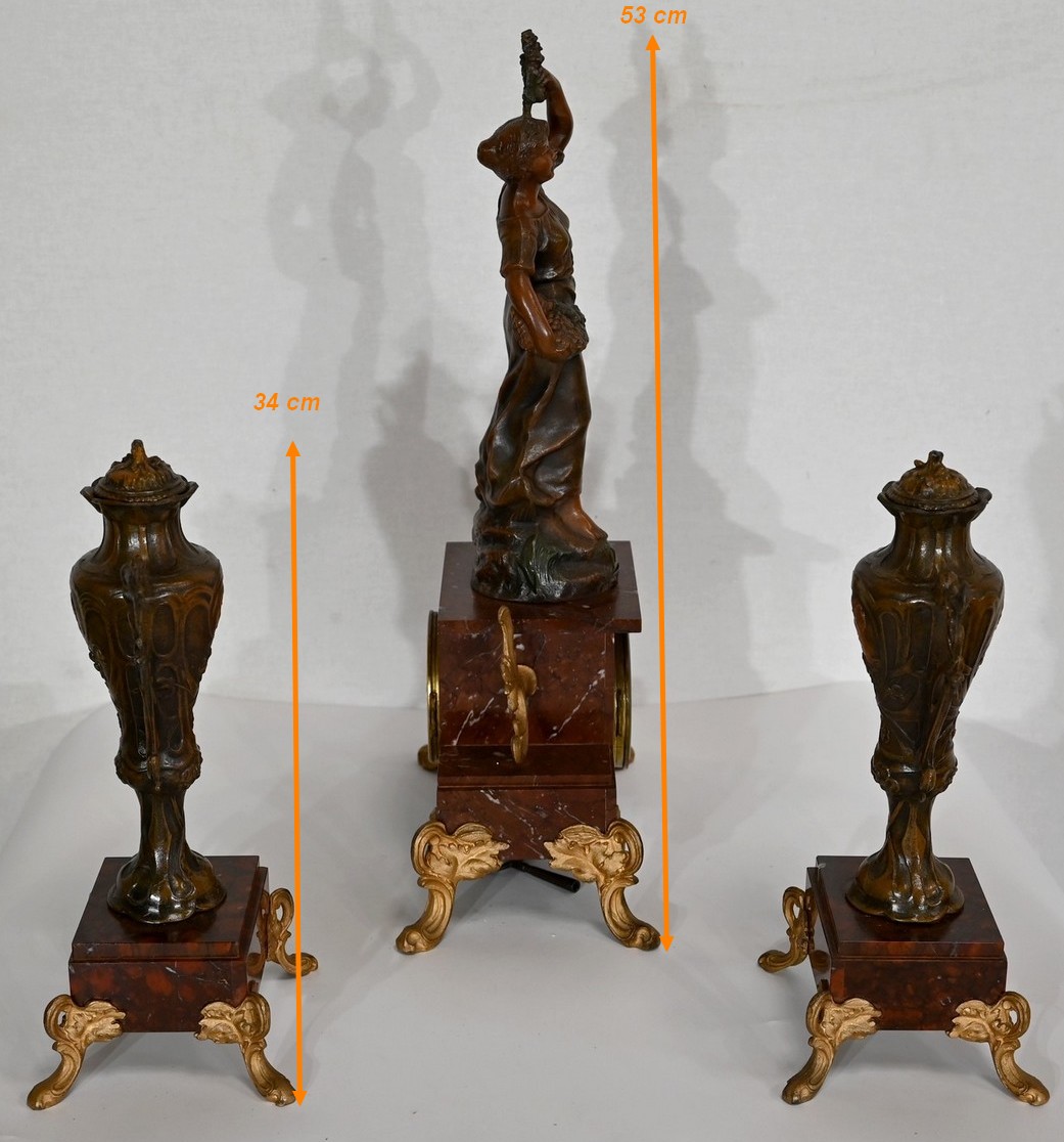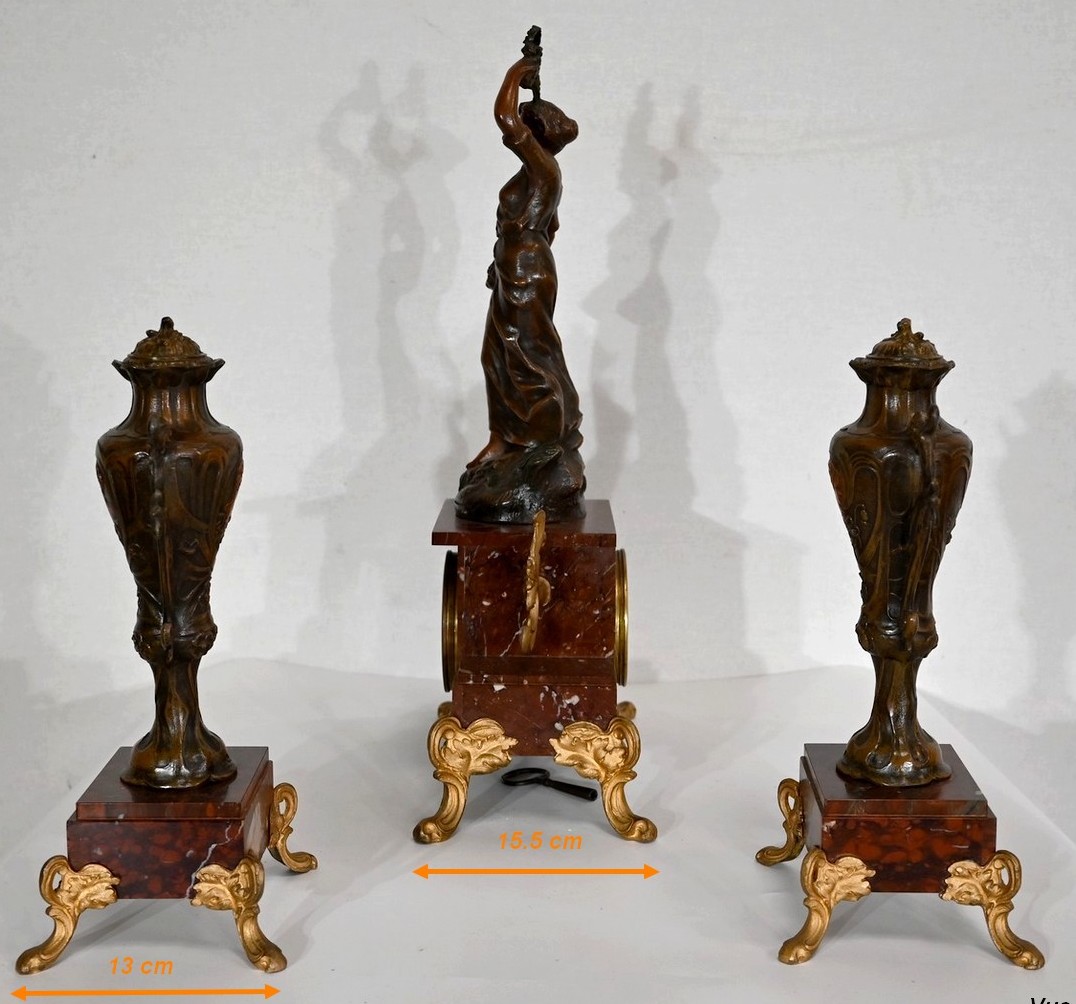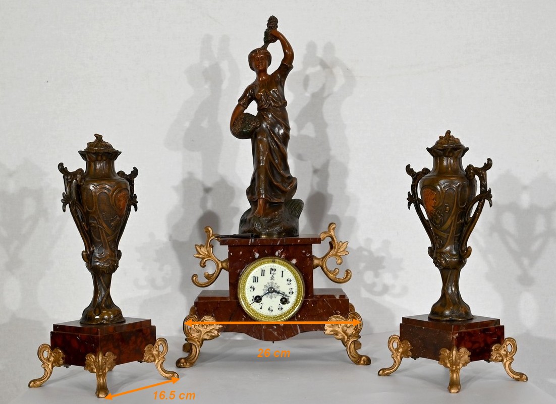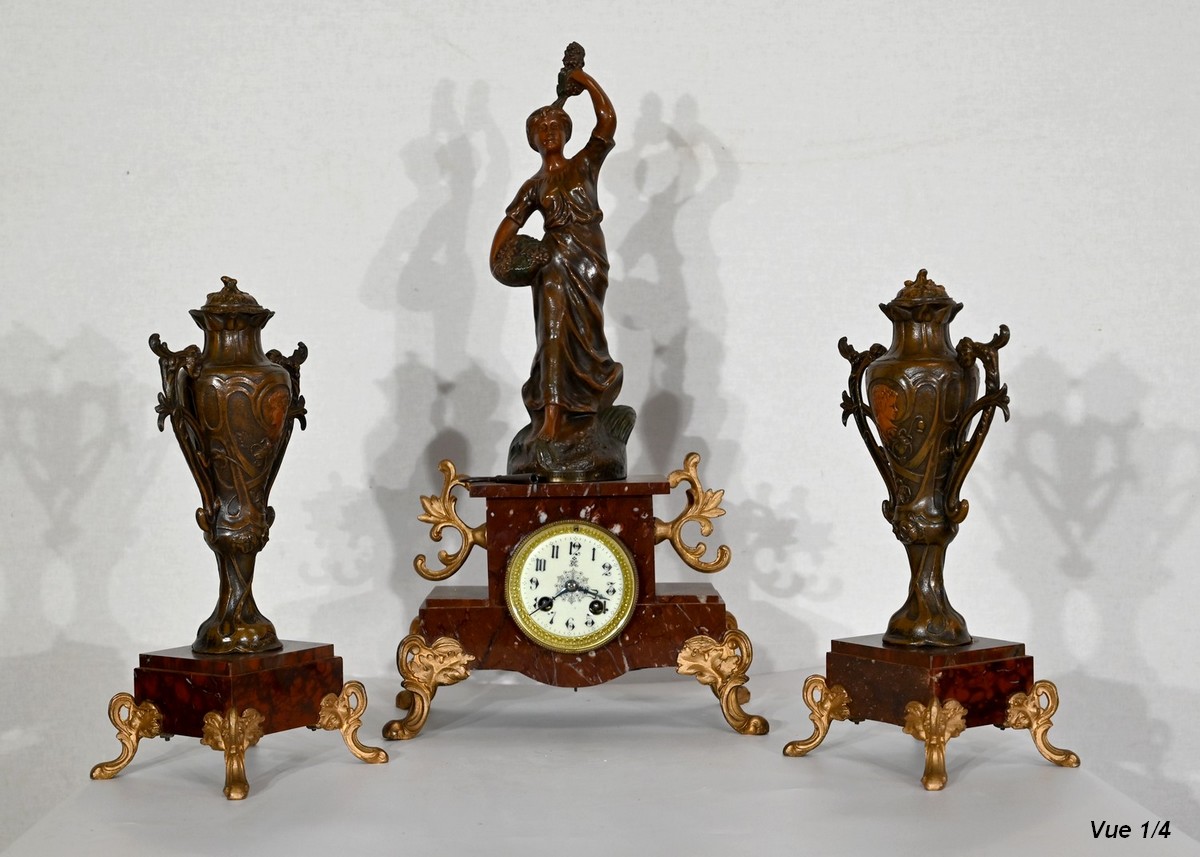 Garniture de cheminée en Régule et Marbre griotte – 1920