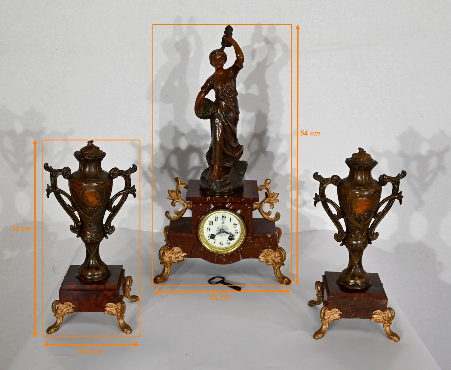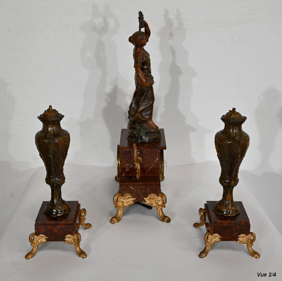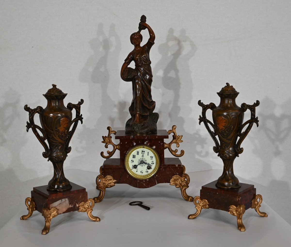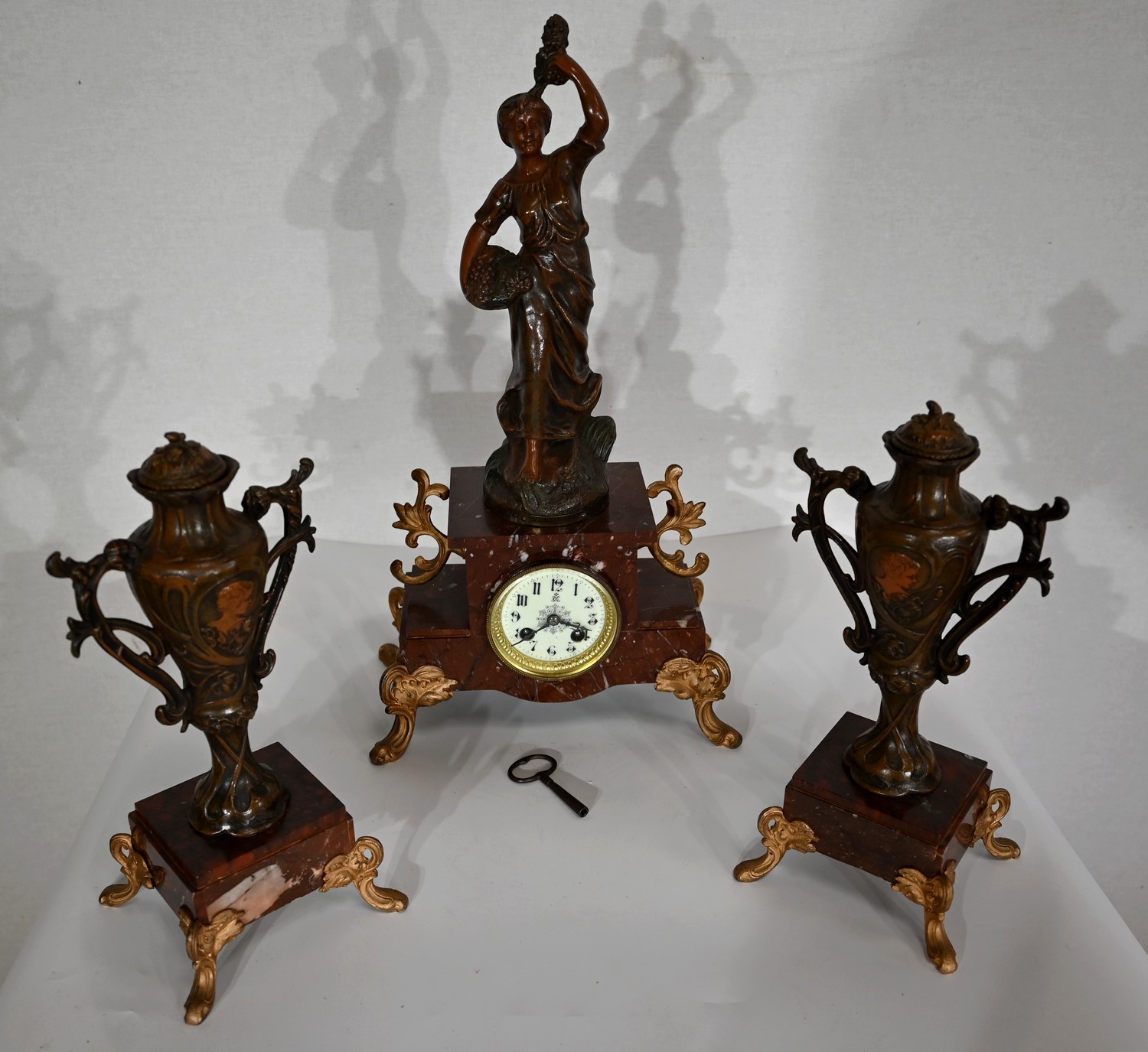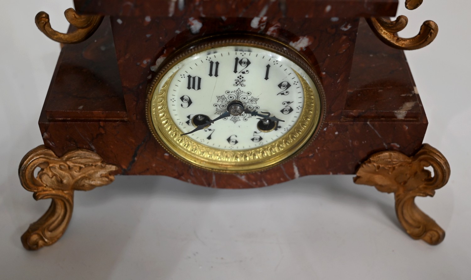 Garniture de cheminée en Régule et Marbre griotte – 1920