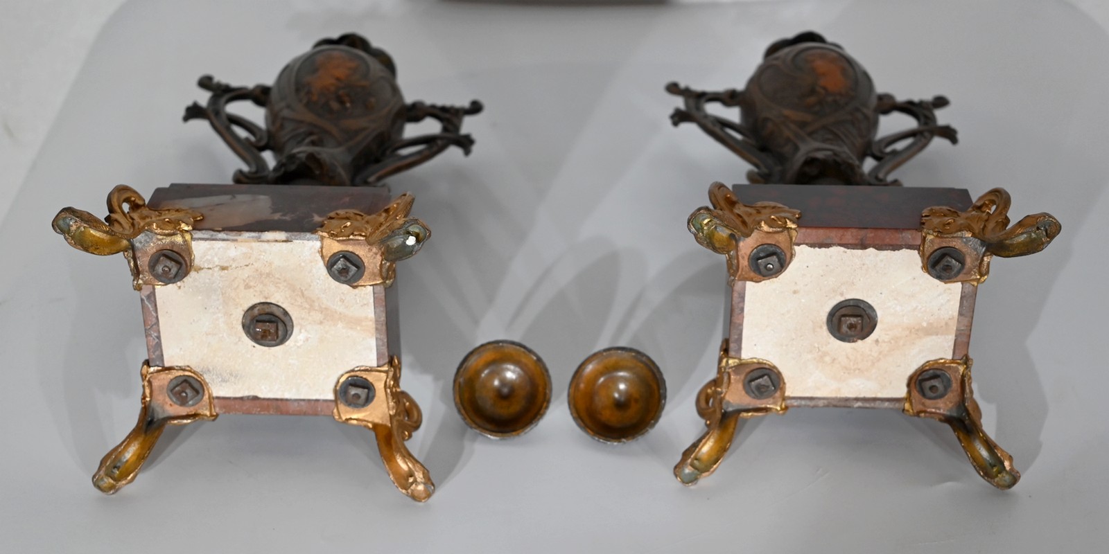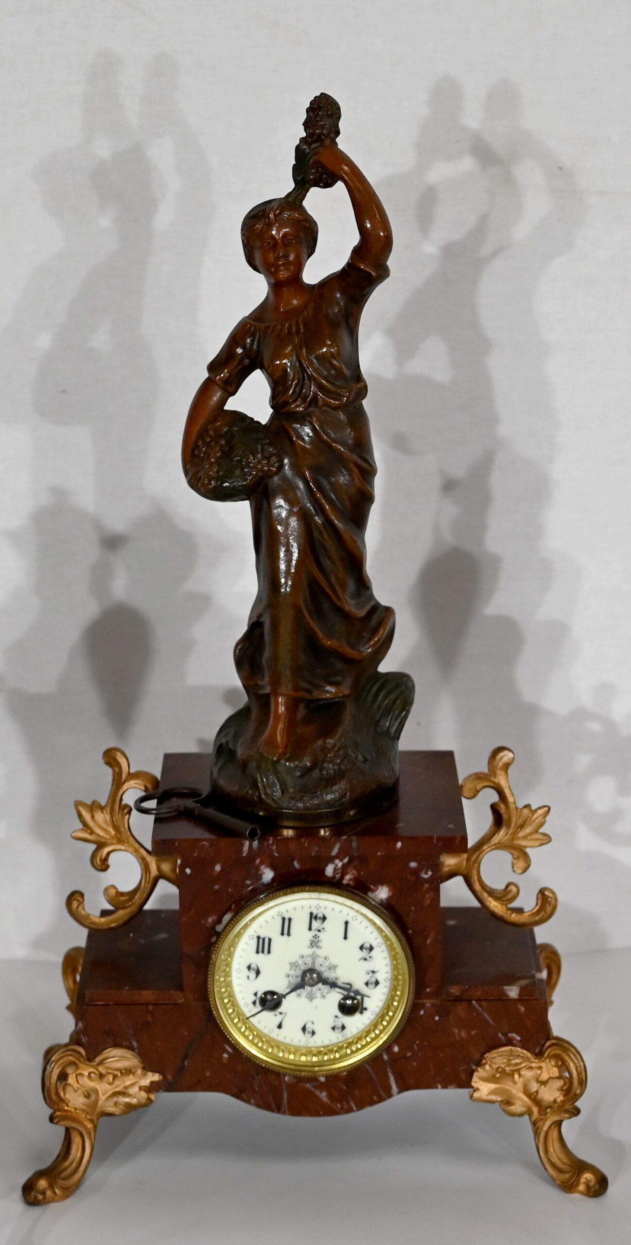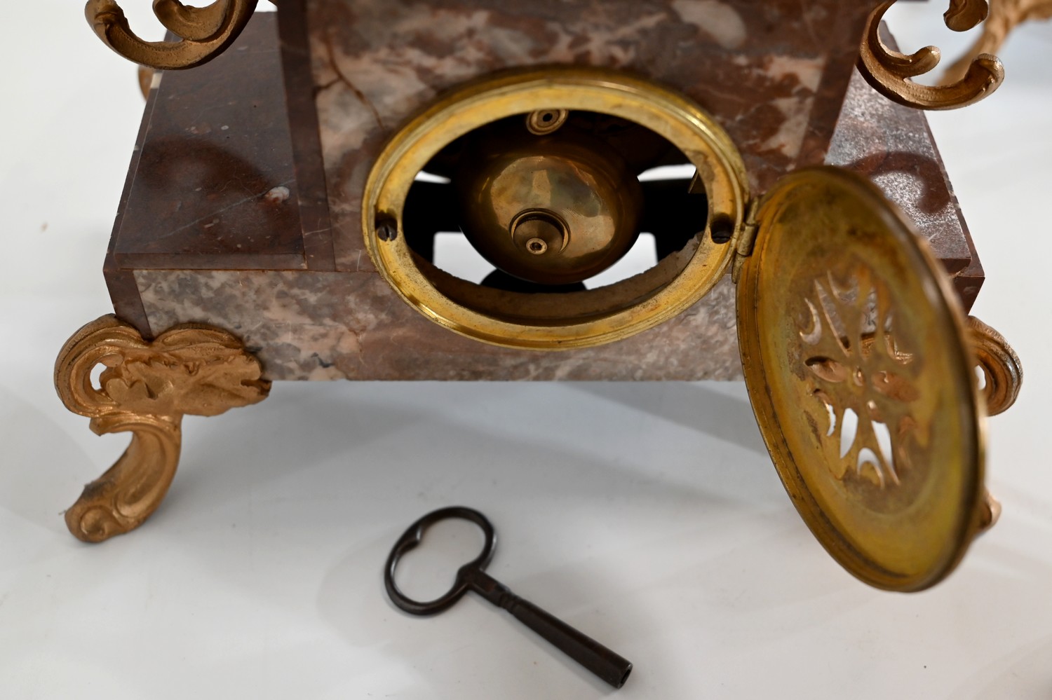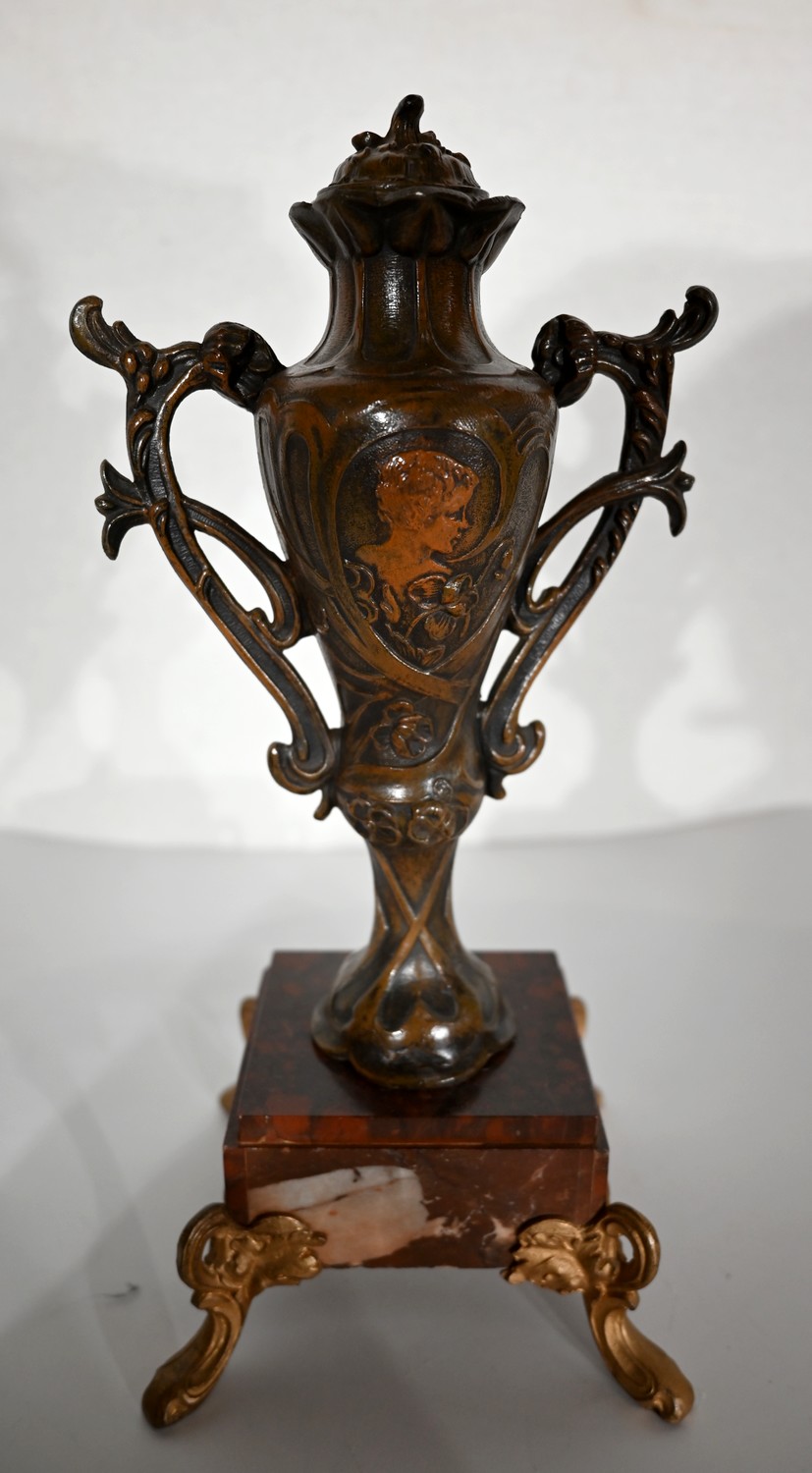 Garniture de cheminée en Régule et Marbre griotte – 1920