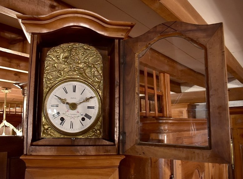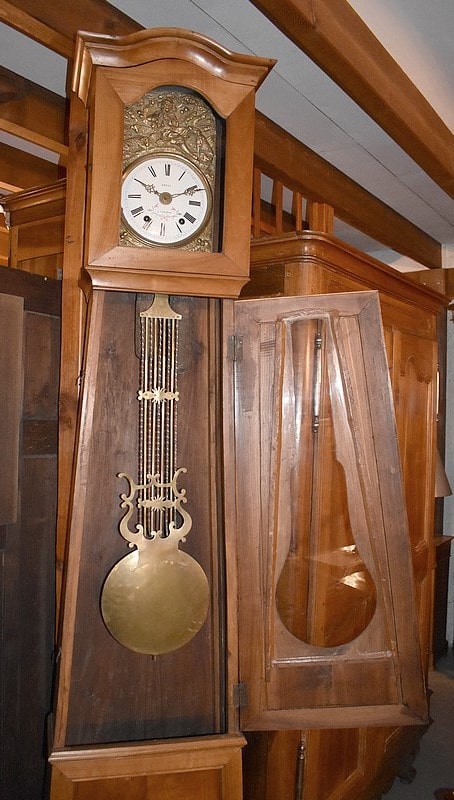Horloge de parquet gainée Louis-Philippe en merisier blond , cette horloge est typiquement de la région du Nord-Loire