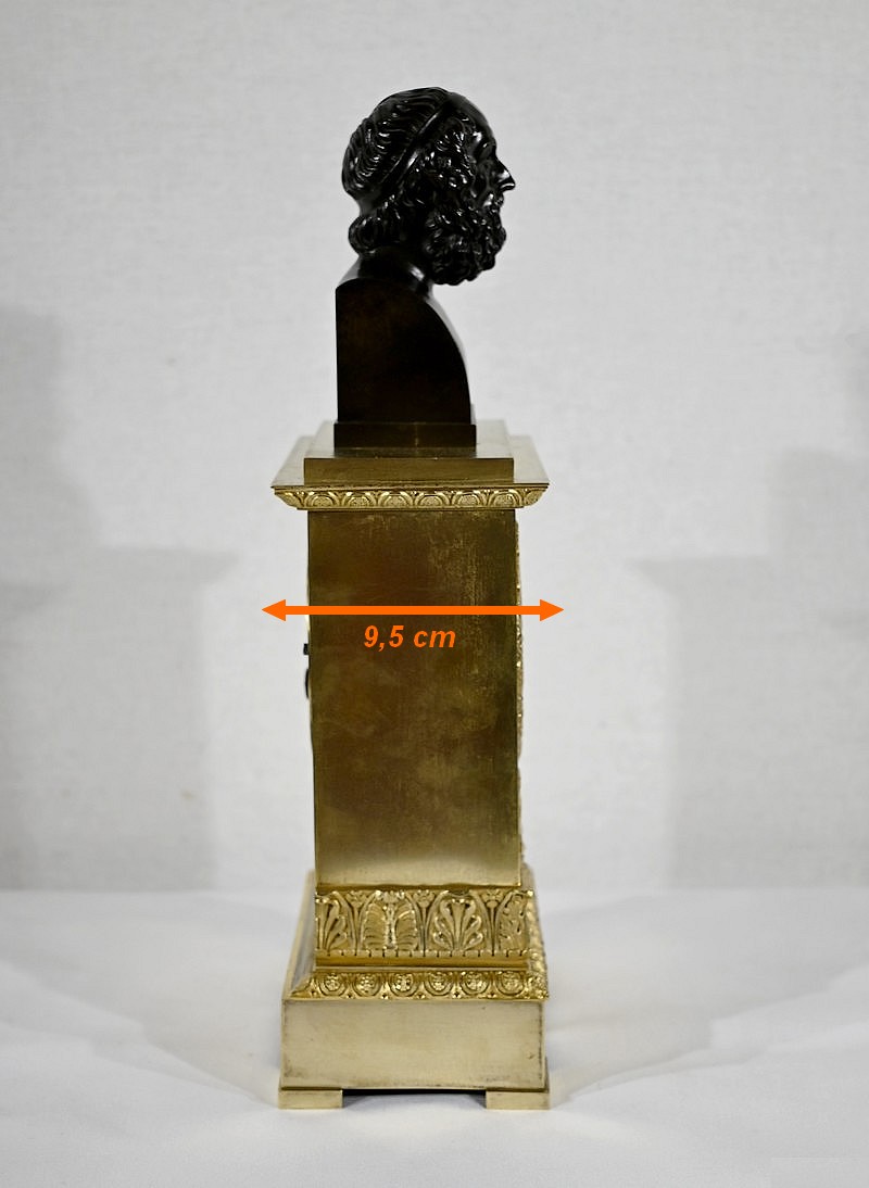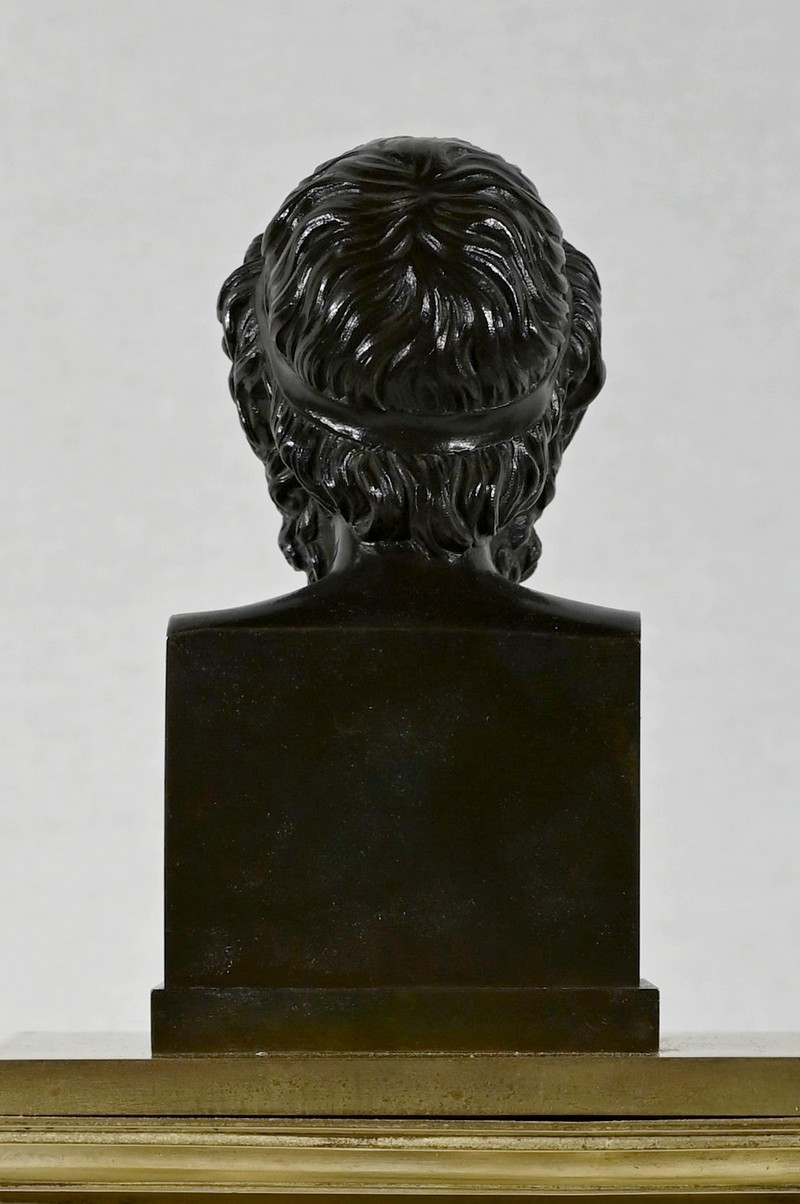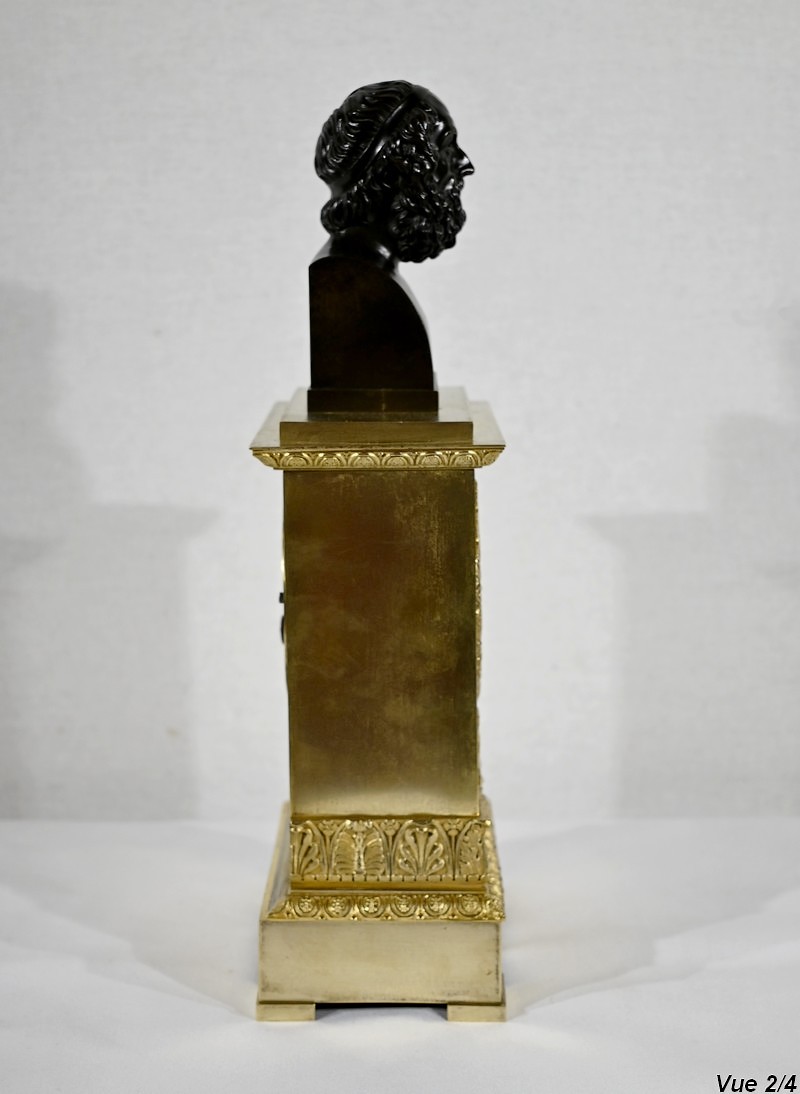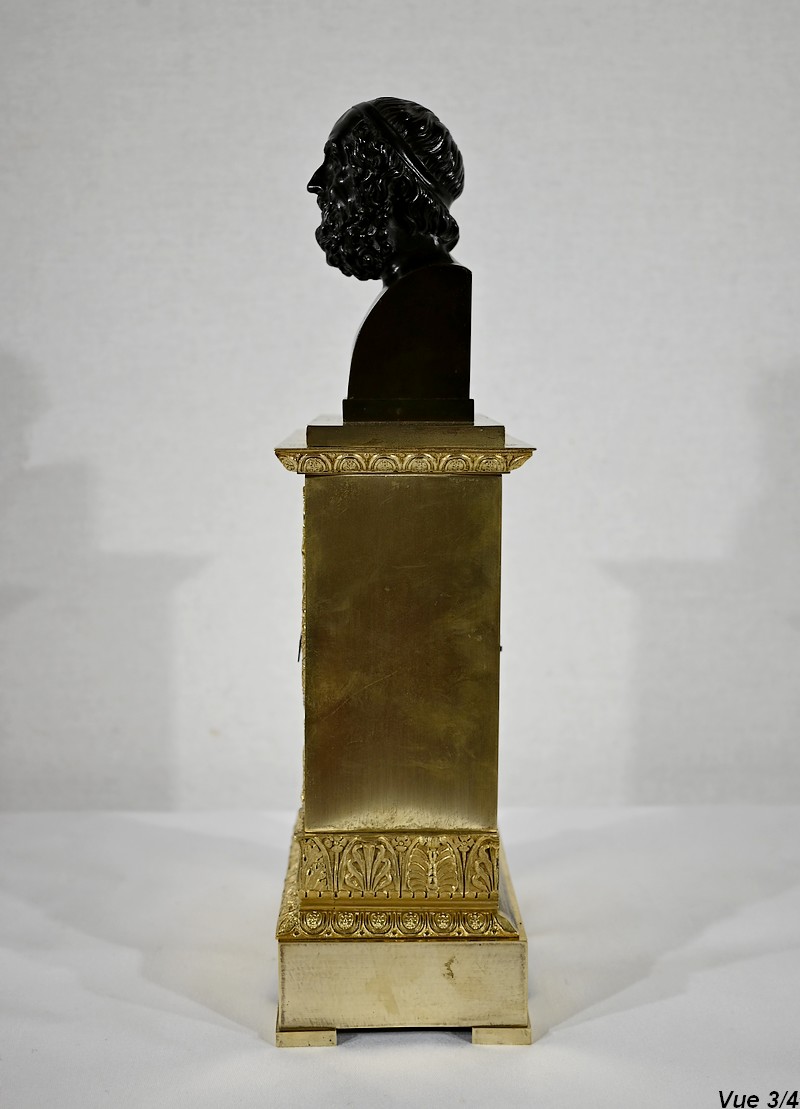 Il est sommé d’un buste d’Homère en bronze à patine brune.