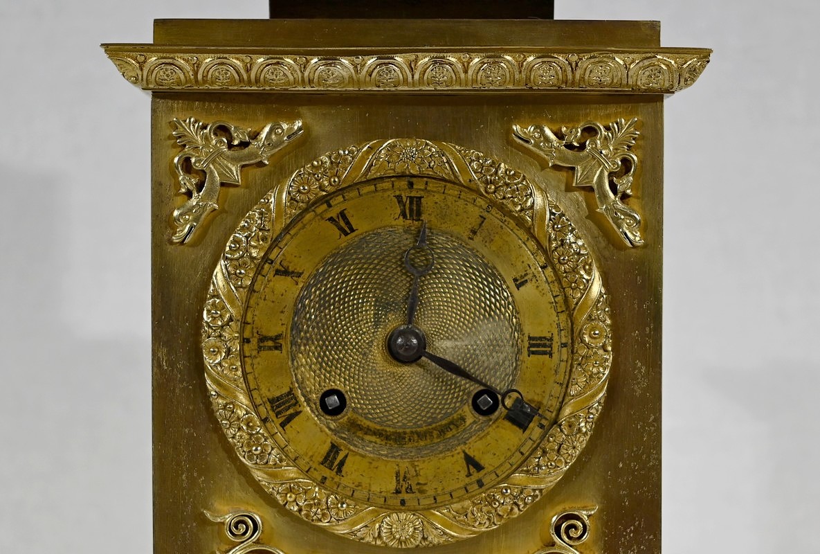 Horloge en bronze doré, à mouvement à fil, estampillée Alexandre Destape, horloger du Palais Royal de Paris durant le XIXe siècle.