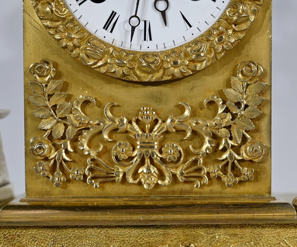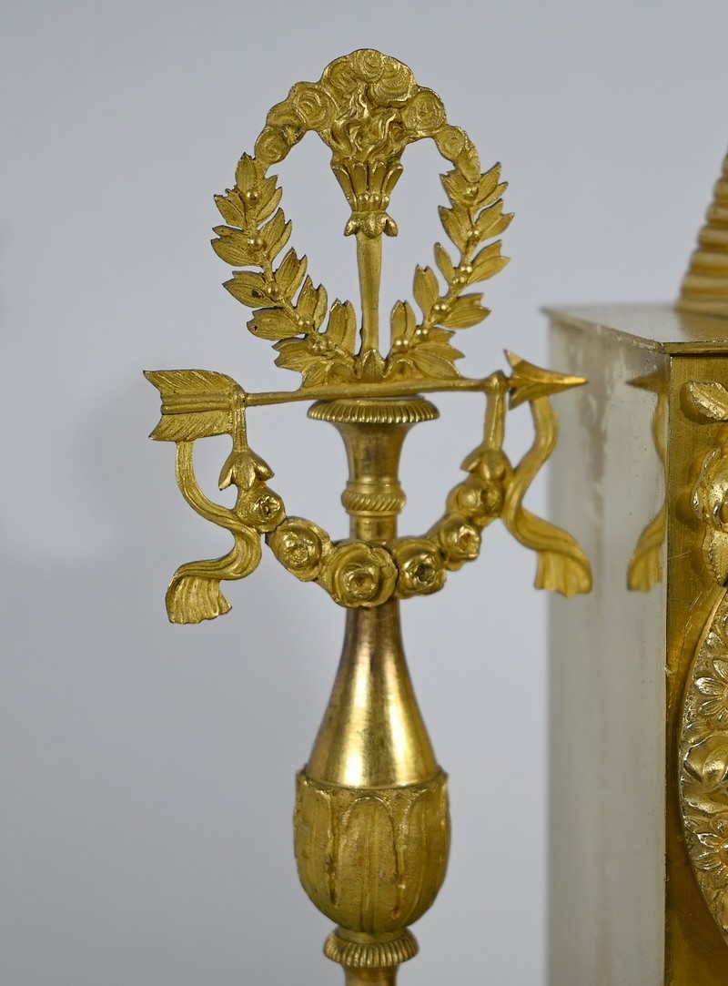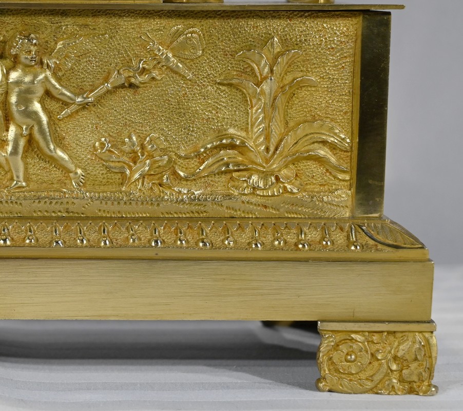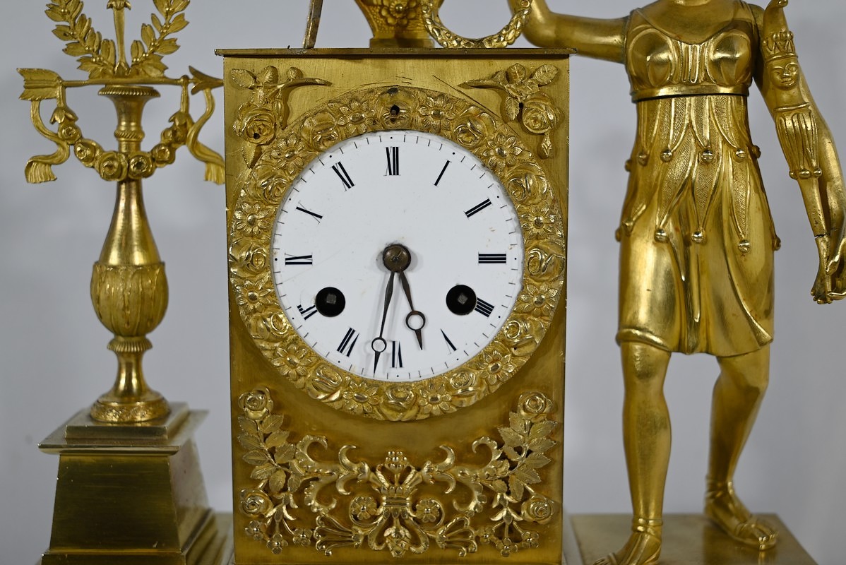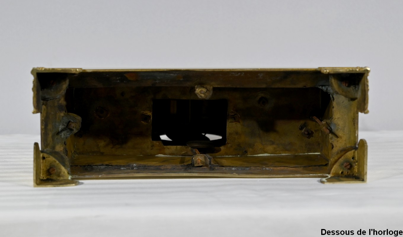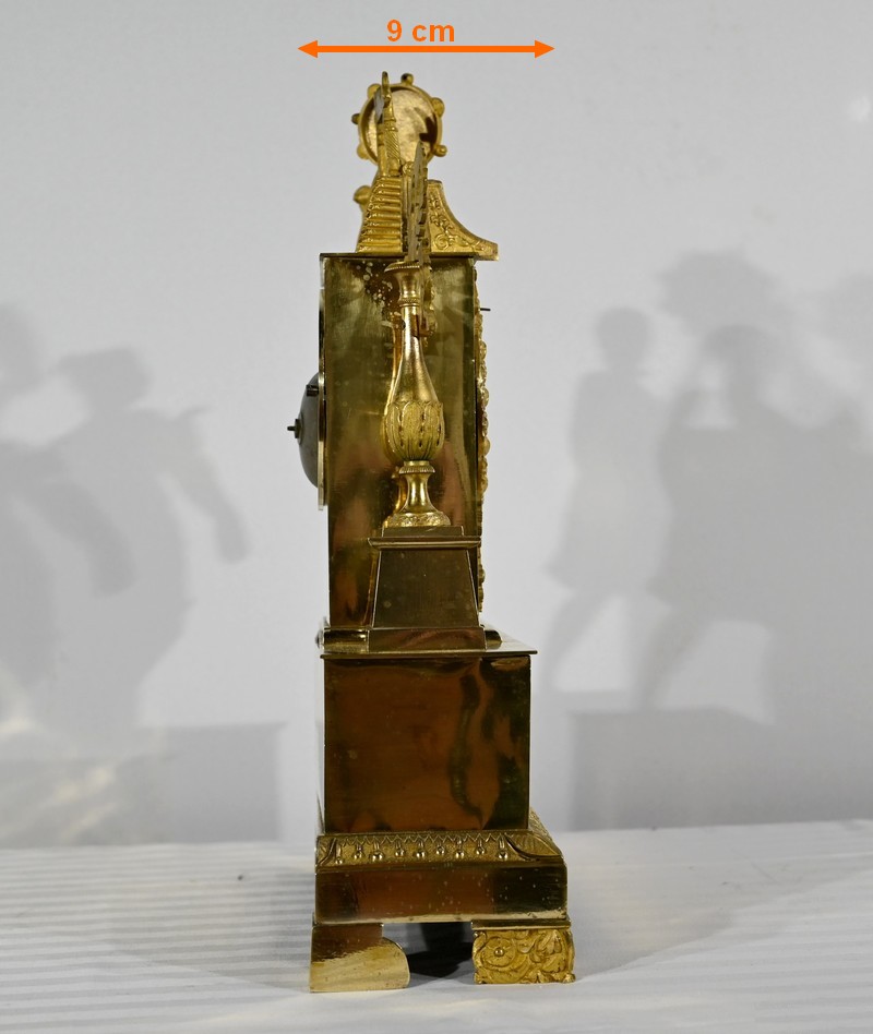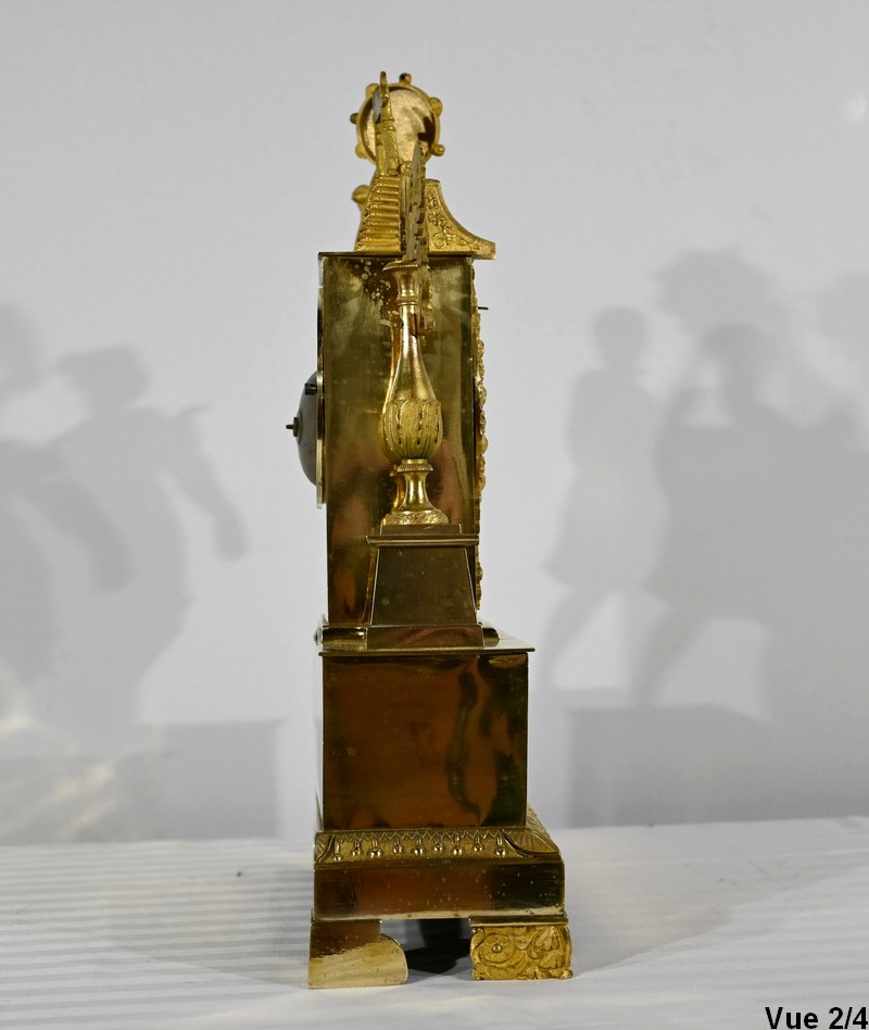 Pendule rectangulaire étagée, en bronze doré, datant du début du XIXe siècle.