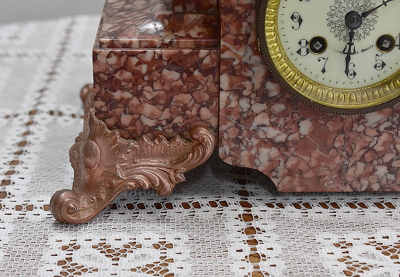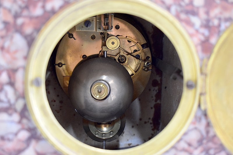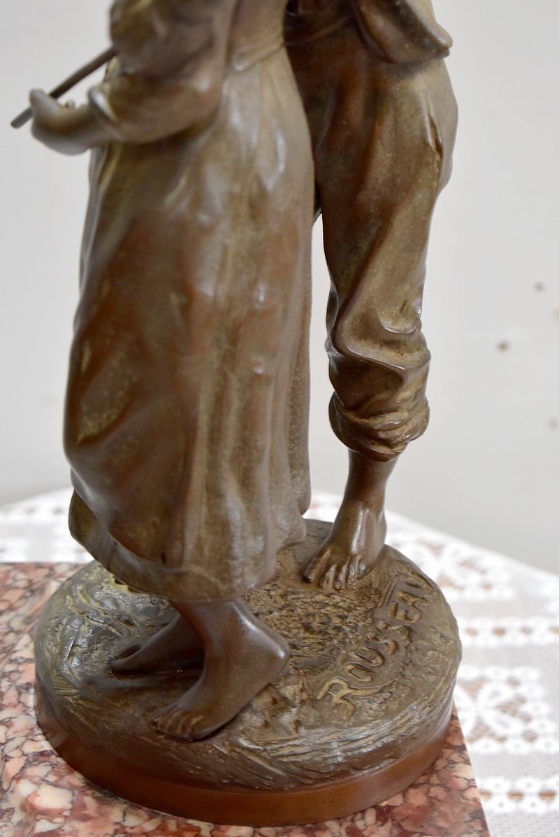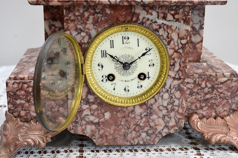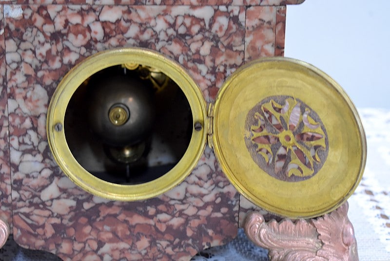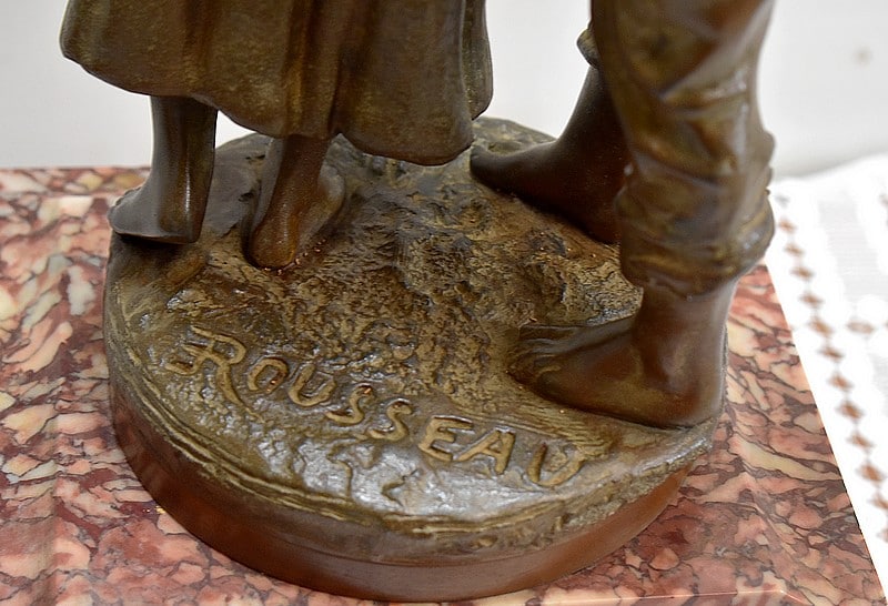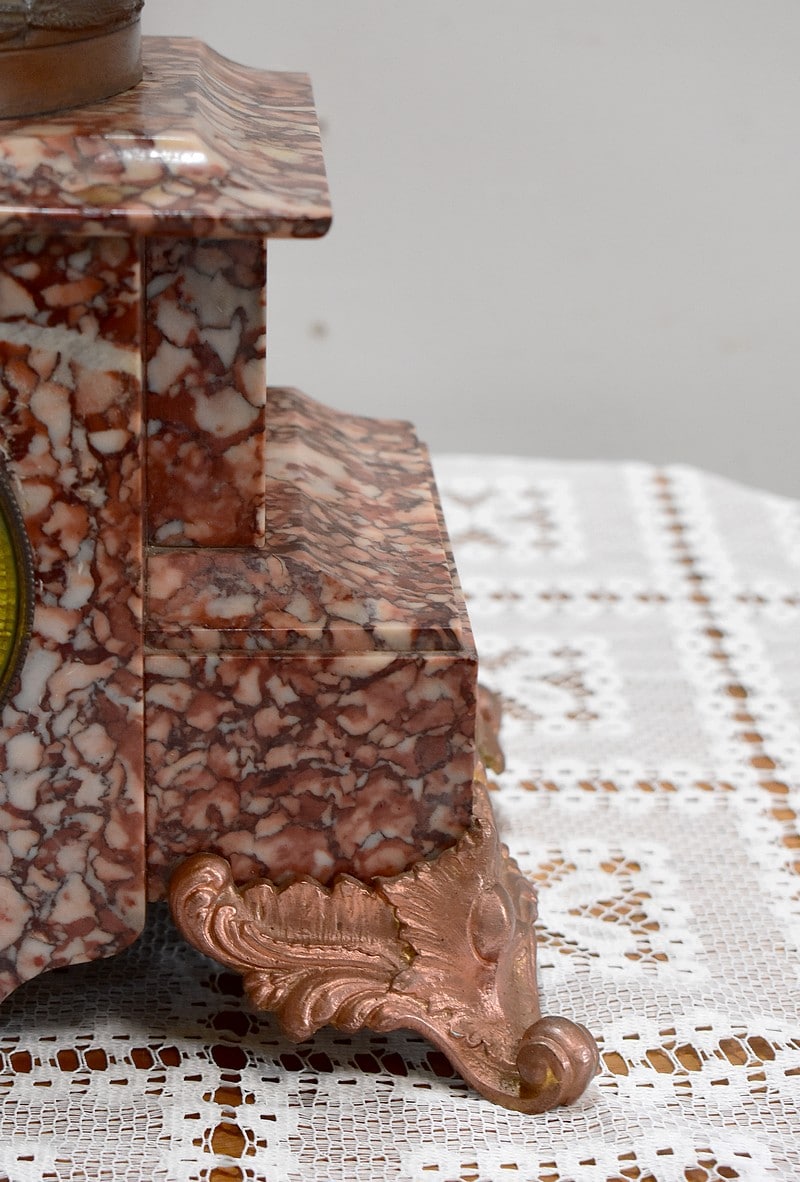 Pendule de cheminée en marbre rouge surmontée de sa sculpture en Régule signée Victor Rousseau (1865 – 1954).