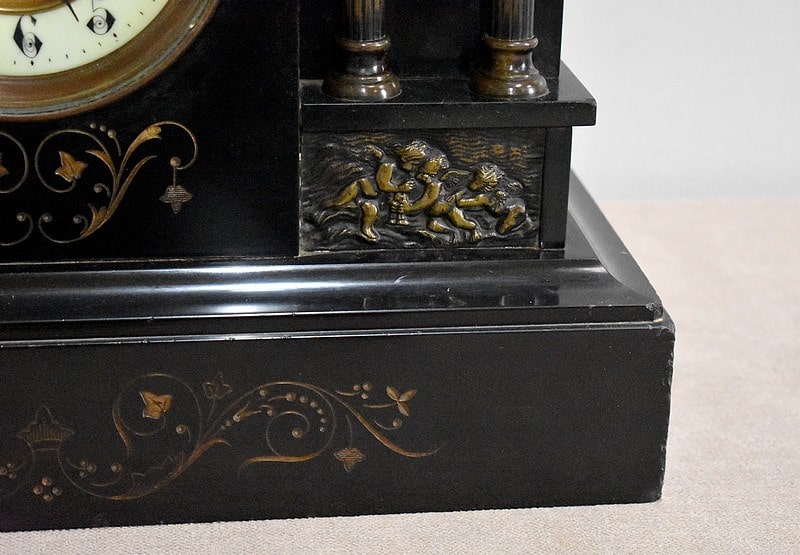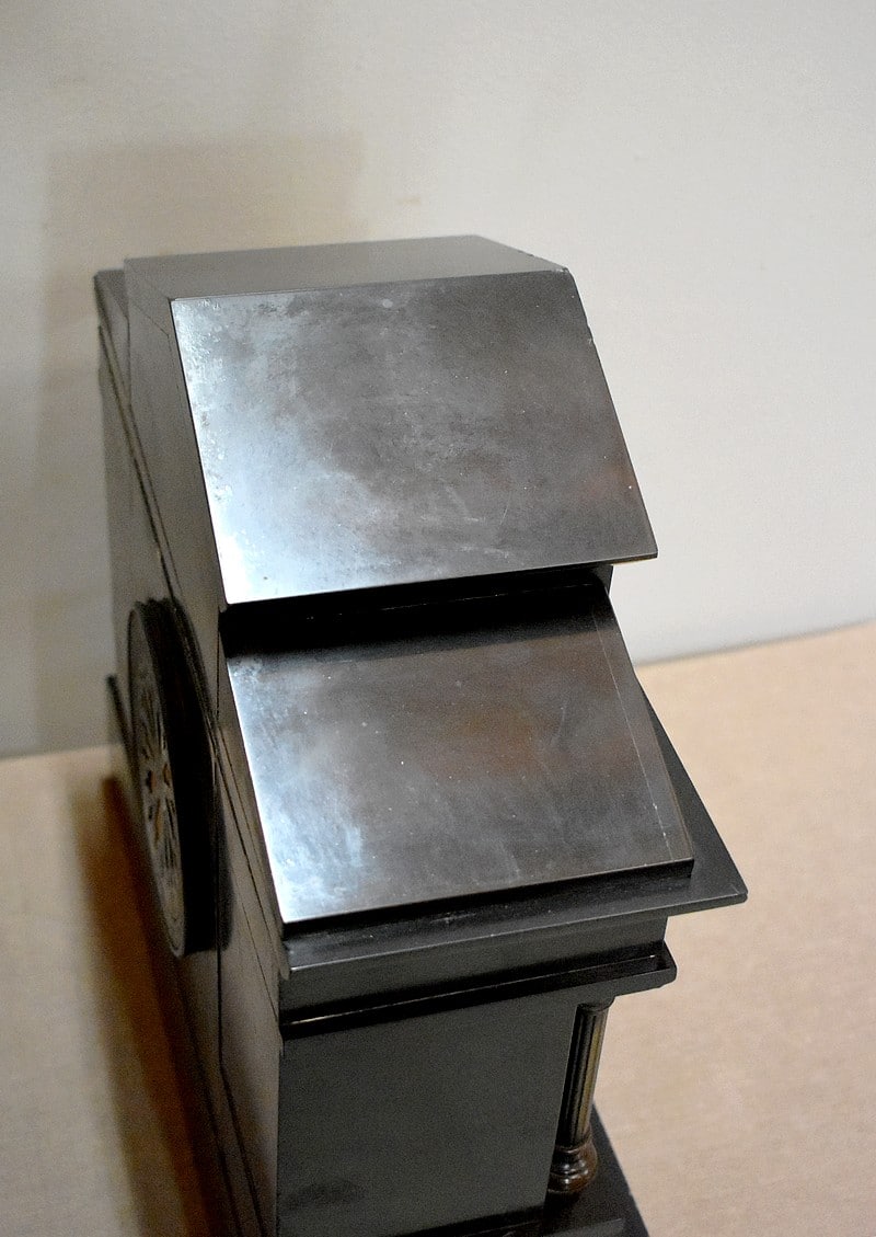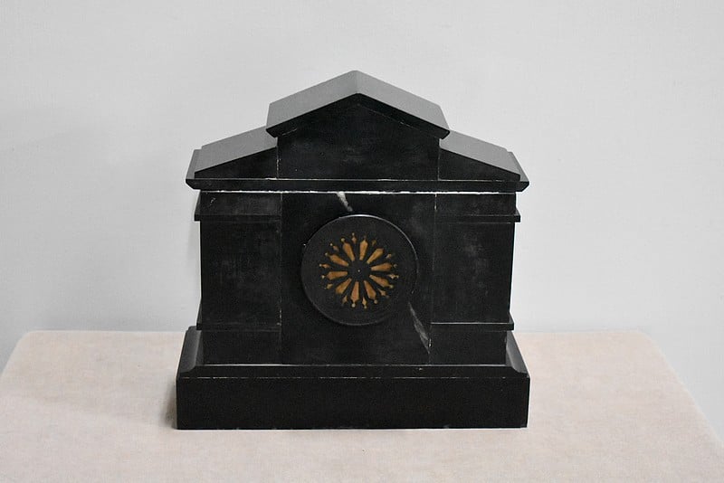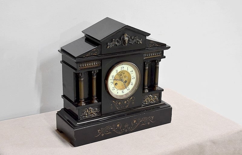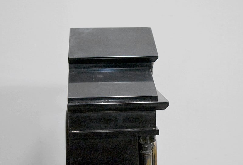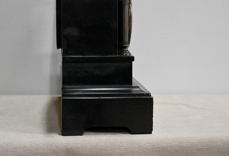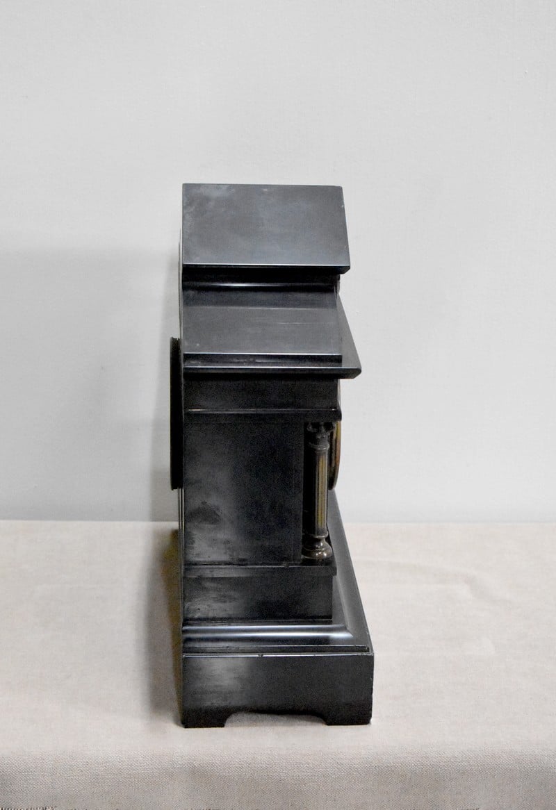 Pendule de cheminée de style Napoléon III en marbre noir uni, très lourde.