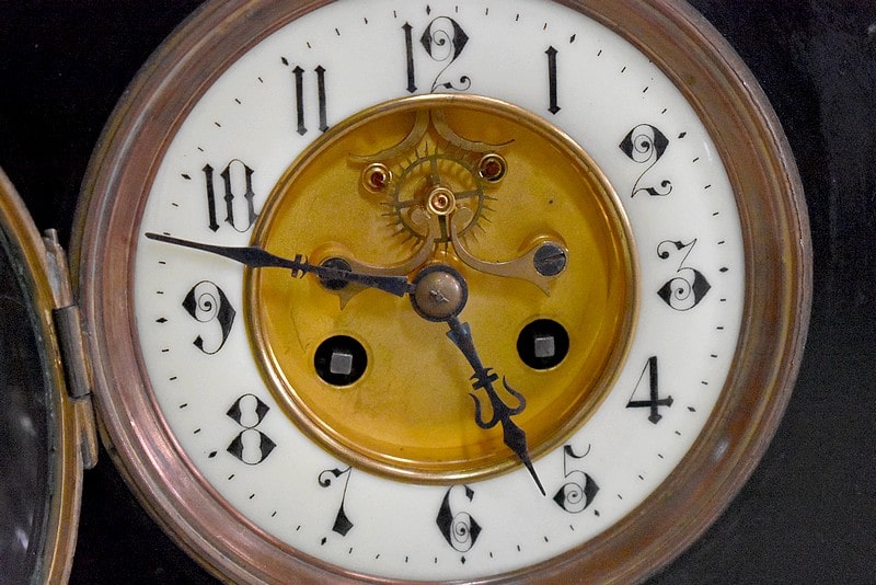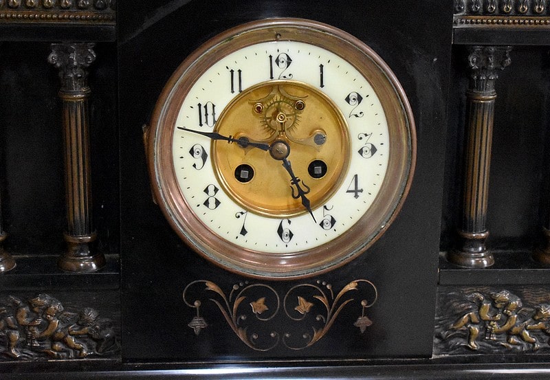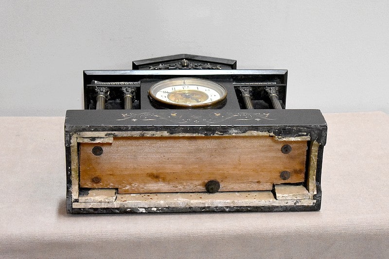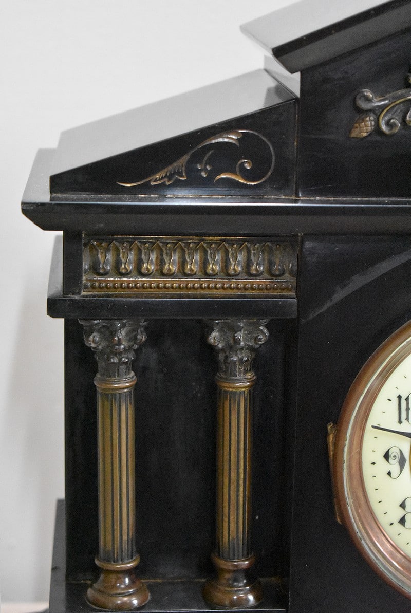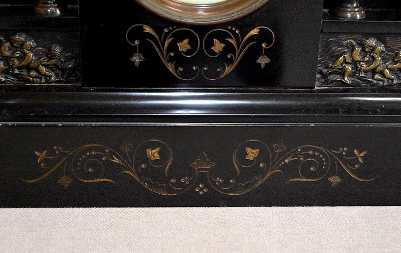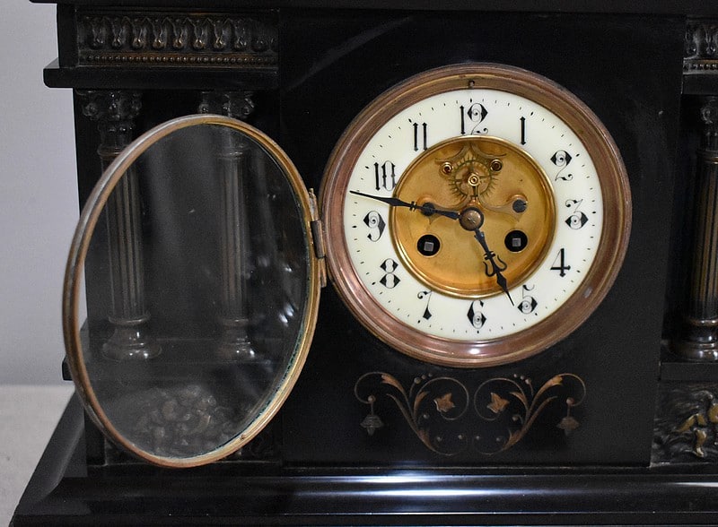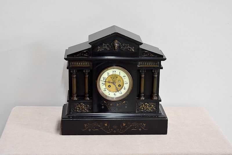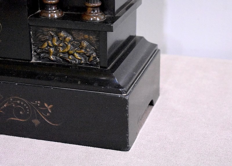 Pendule de cheminée de style Napoléon III en marbre noir uni, très lourde.