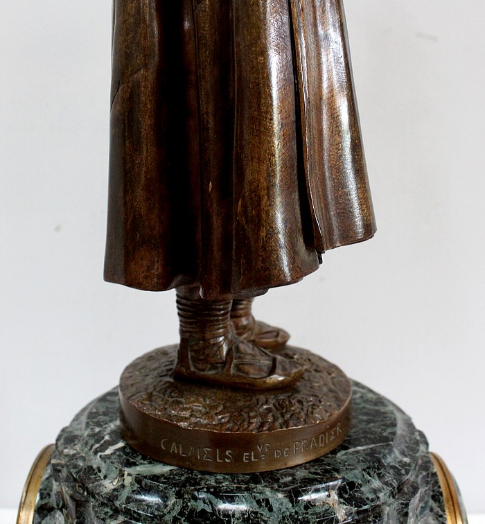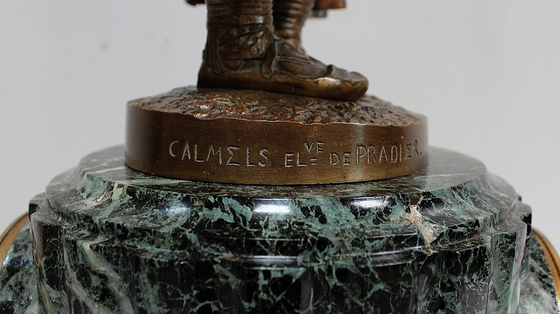 Sculpteur français et Lauréat du prix de Rome en 1839, Célestin Anatole Calmels (1822-1906) était l’élève de James Pradier, comme l’indique la signature sur la terrasse du Bronze.