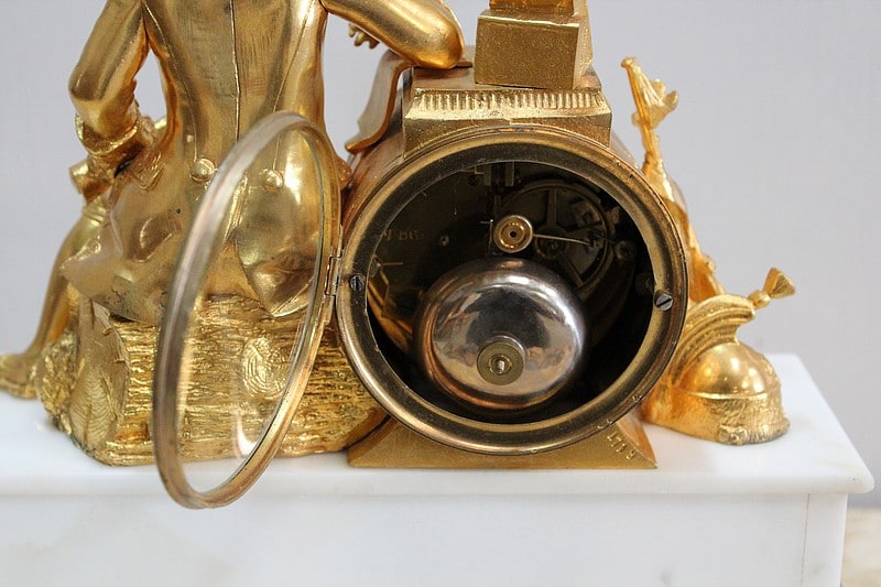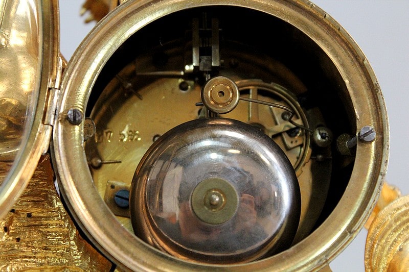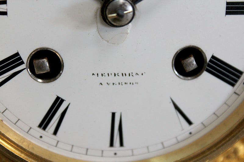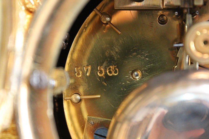 La pendule est doté d’un cadran à chiffres romains et signé ‘A Vernon’ et son mécanisme est numéroté 57565.