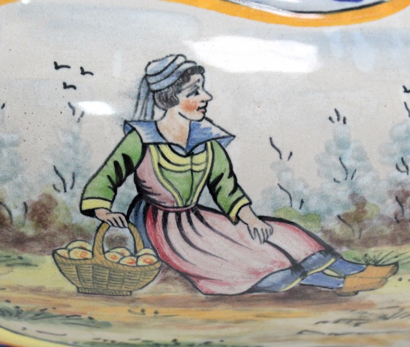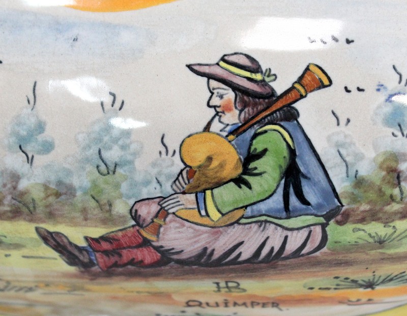 Les parties pansues présentent deux tableaux différents. Sur le premier figure deux personnages, vêtus des habits traditionnels bretons, assis dans la lande : une femme, tenant un panier, écoute avec attention son compagnon, jouant du bignou. Une guirlande de fleurs et de feuillages orne l’autre côté.