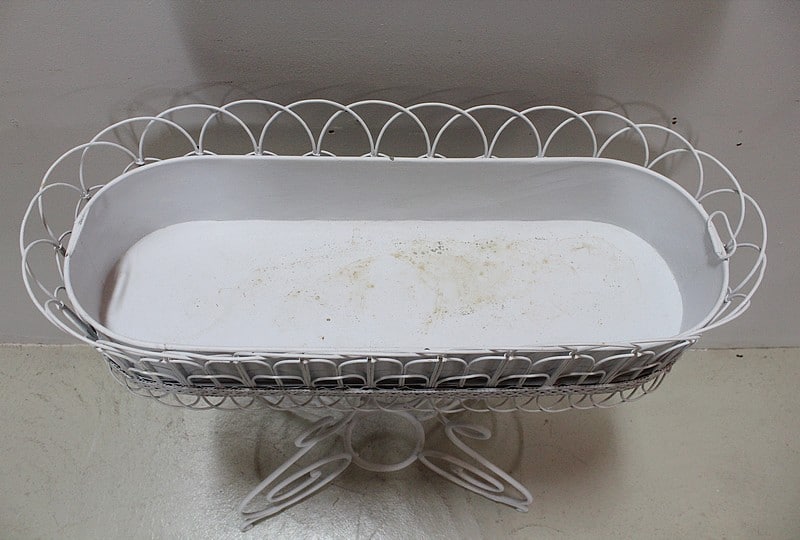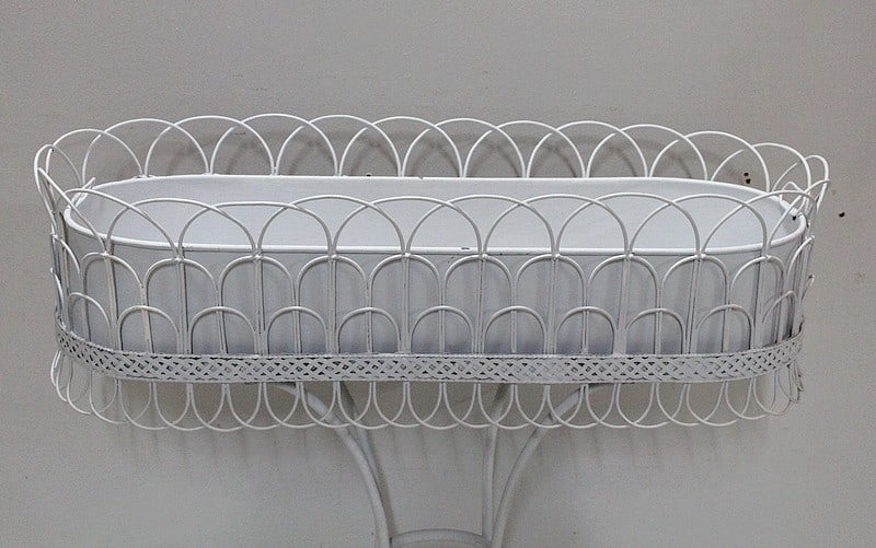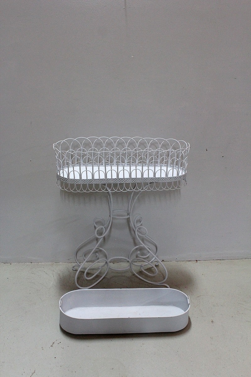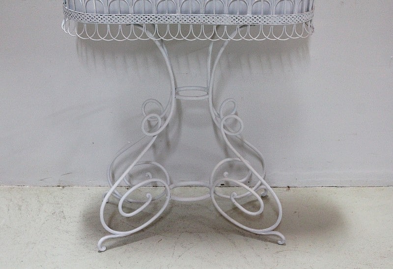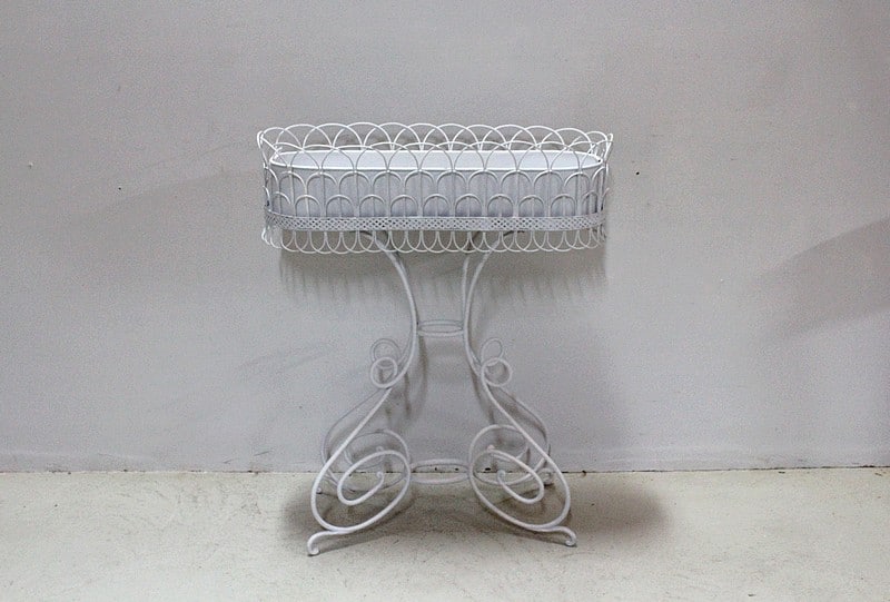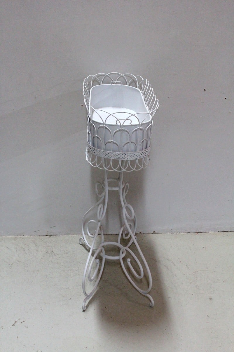 Élégante jardinière en Tôle et fer forgé peinte en blanc.