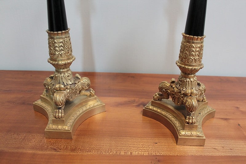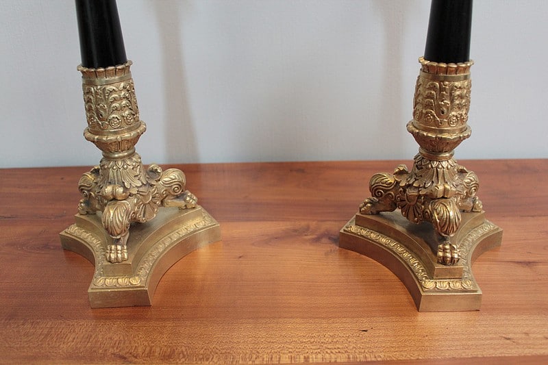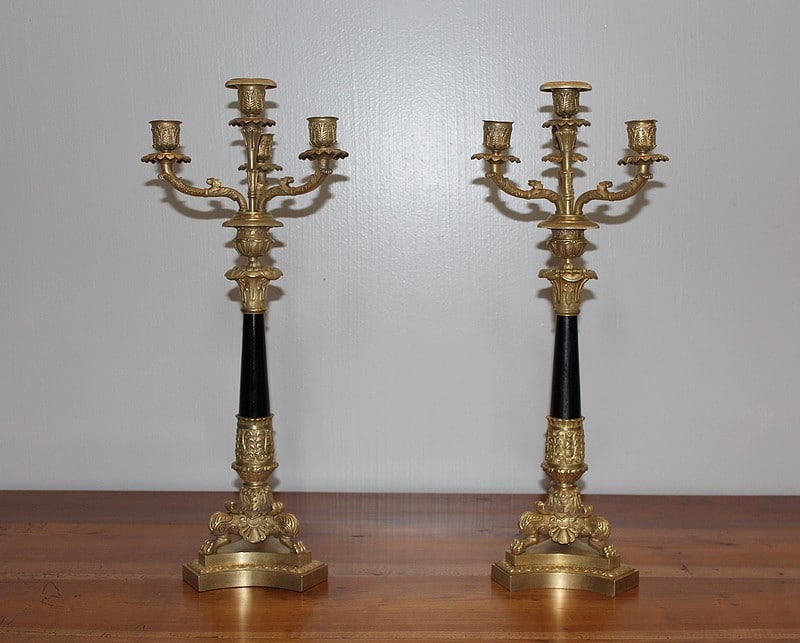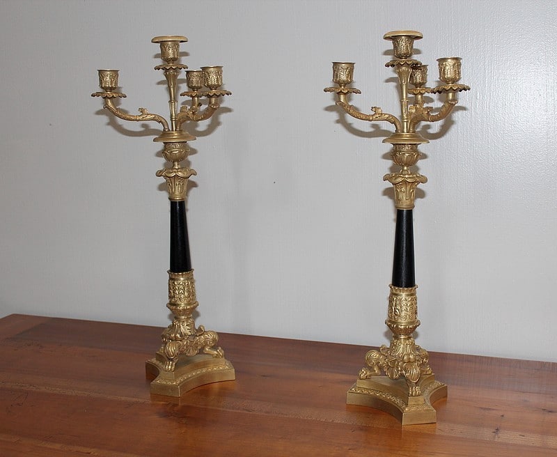 Paire de candélabres à 4 branches en bronze sculpté.