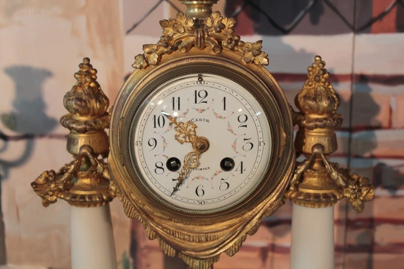 Sur son cadran émaillé à décor de fleurs on lit : ‘CARON’ ‘Quimper’