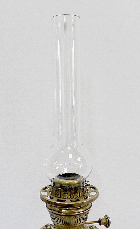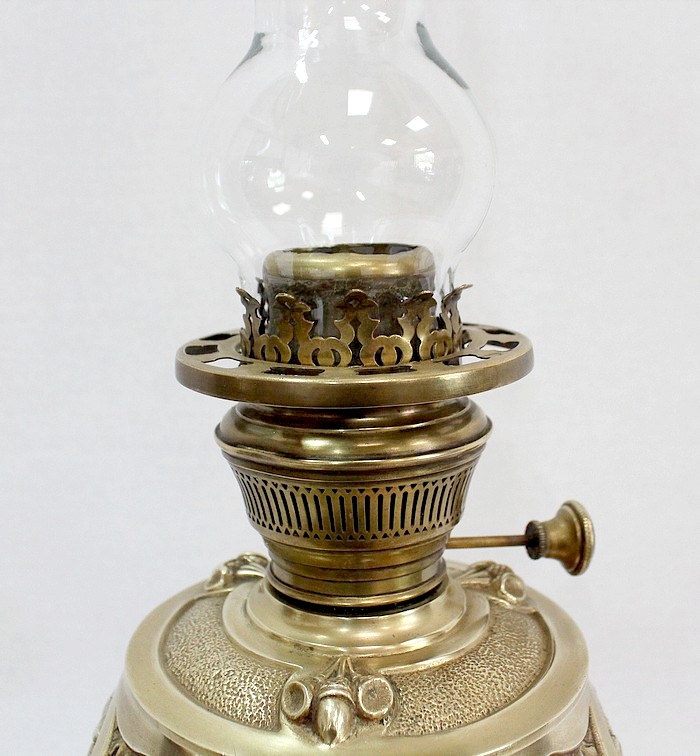 Lampe à Pétrole en Bronze Doré datant de l’époque Art Déco, surmontée d’un Verre Clair en Parfait état.