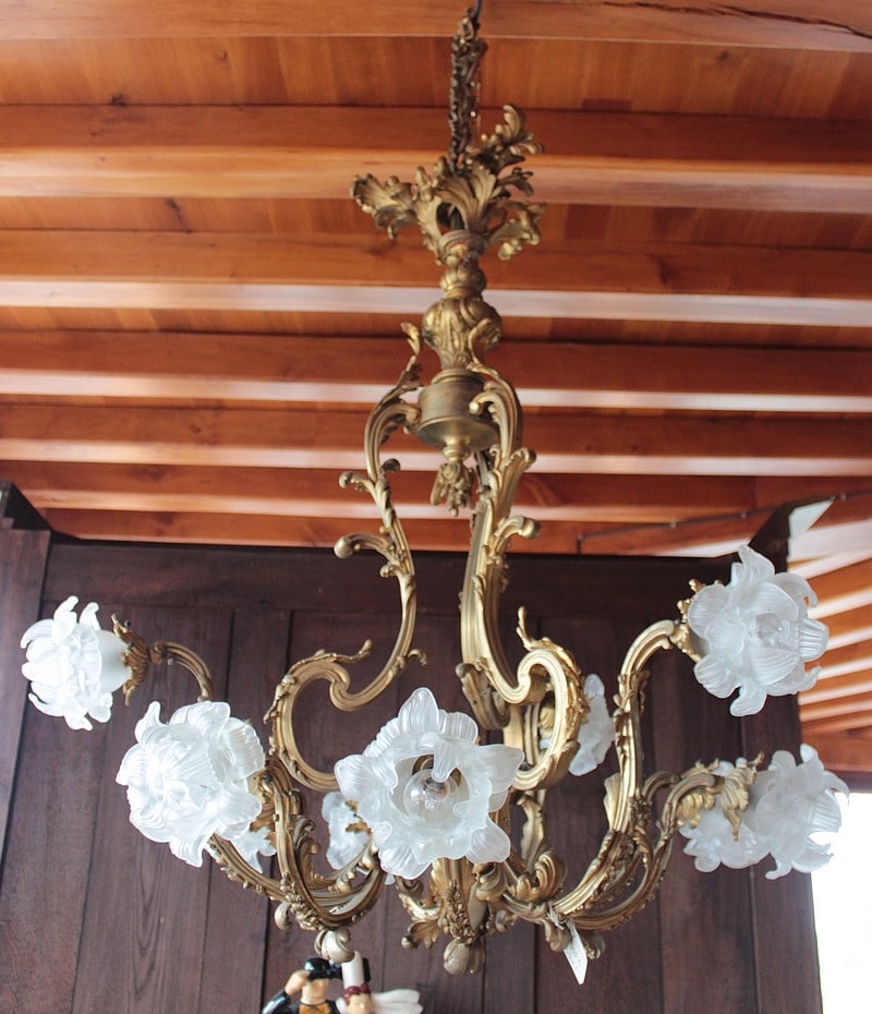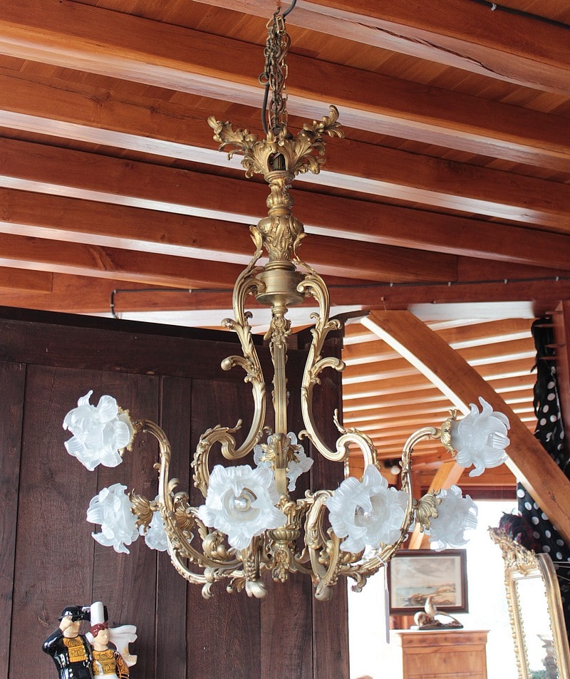 Important lustre en bronze Louis XV rocaille – XIXe