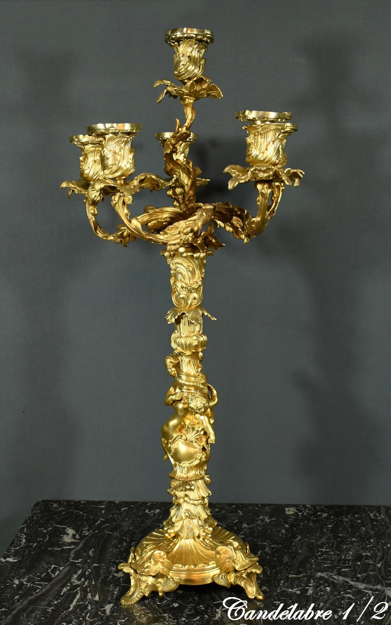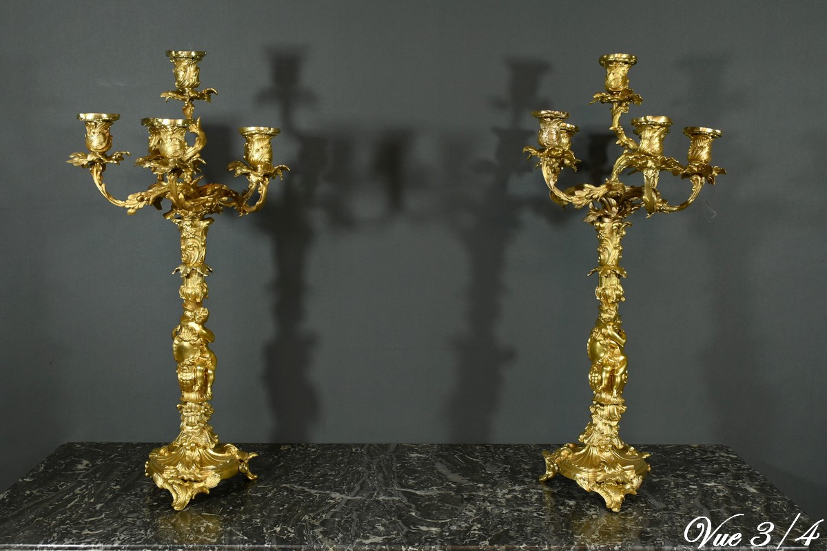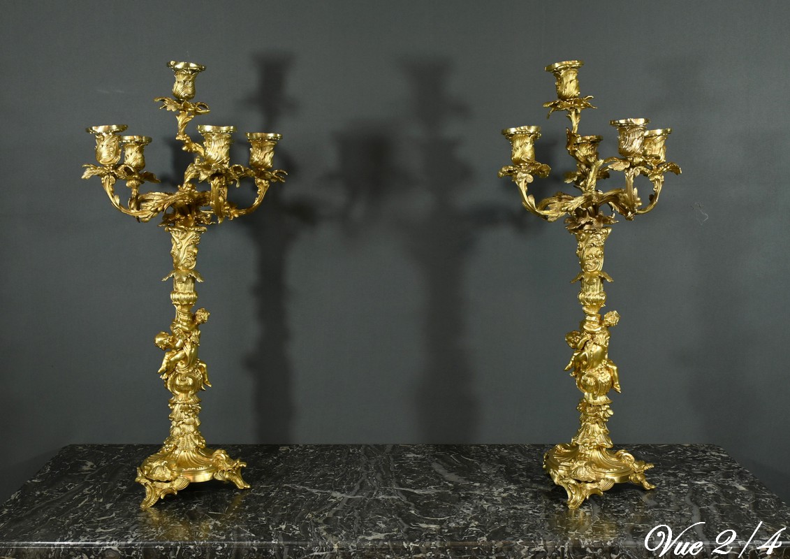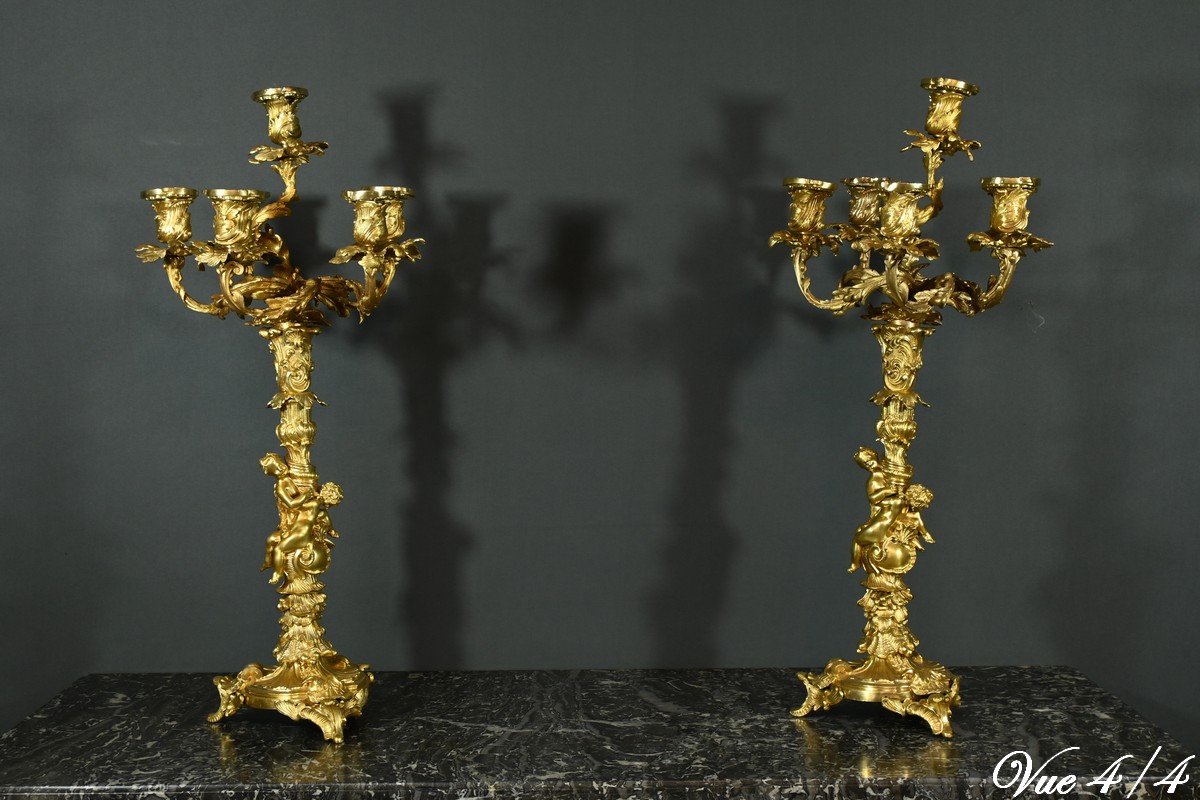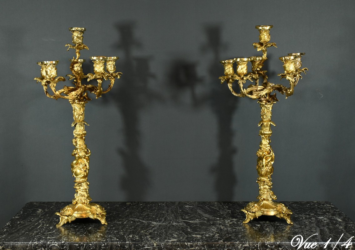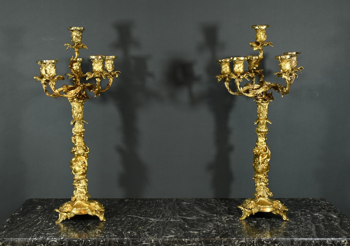 Candélabres en Bronze, d’après J-A. Meissonnier, style Rocaille, époque Napoléon III – Milieu XIXe