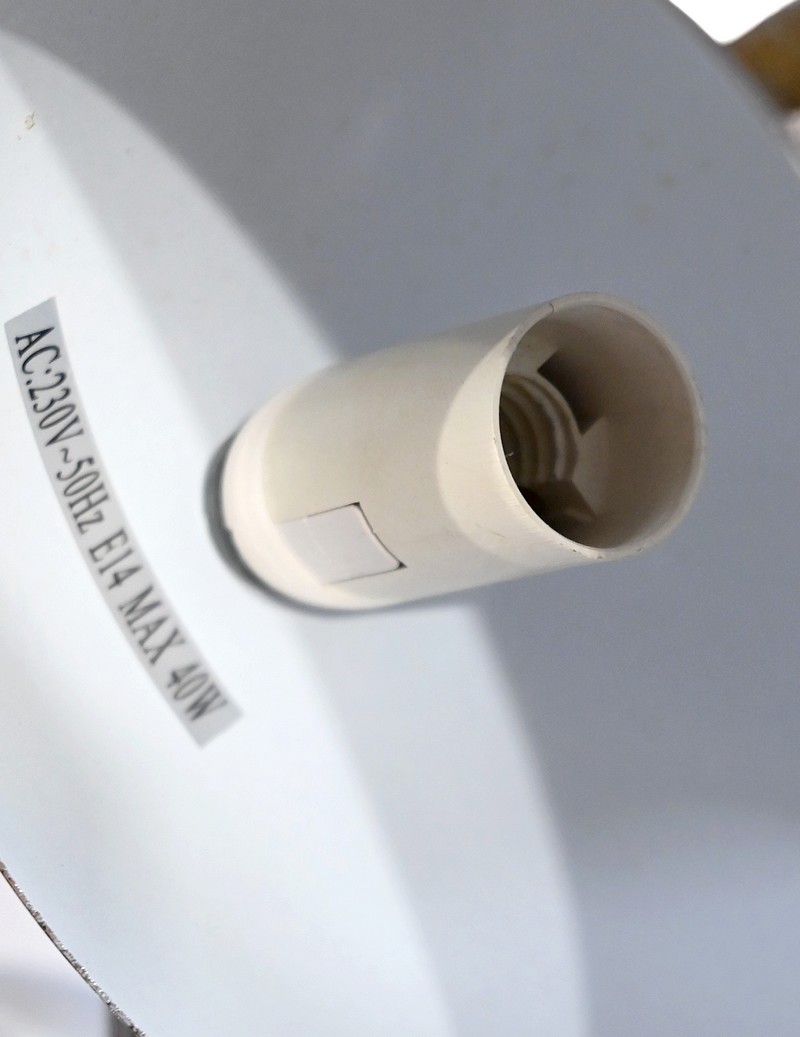 Électrification refaite et opérationnelle. Type d’ampoule : E14 (Petit culot à vis).