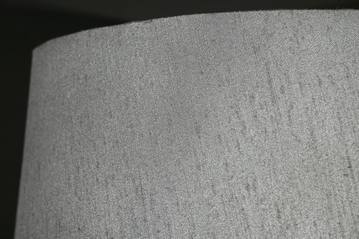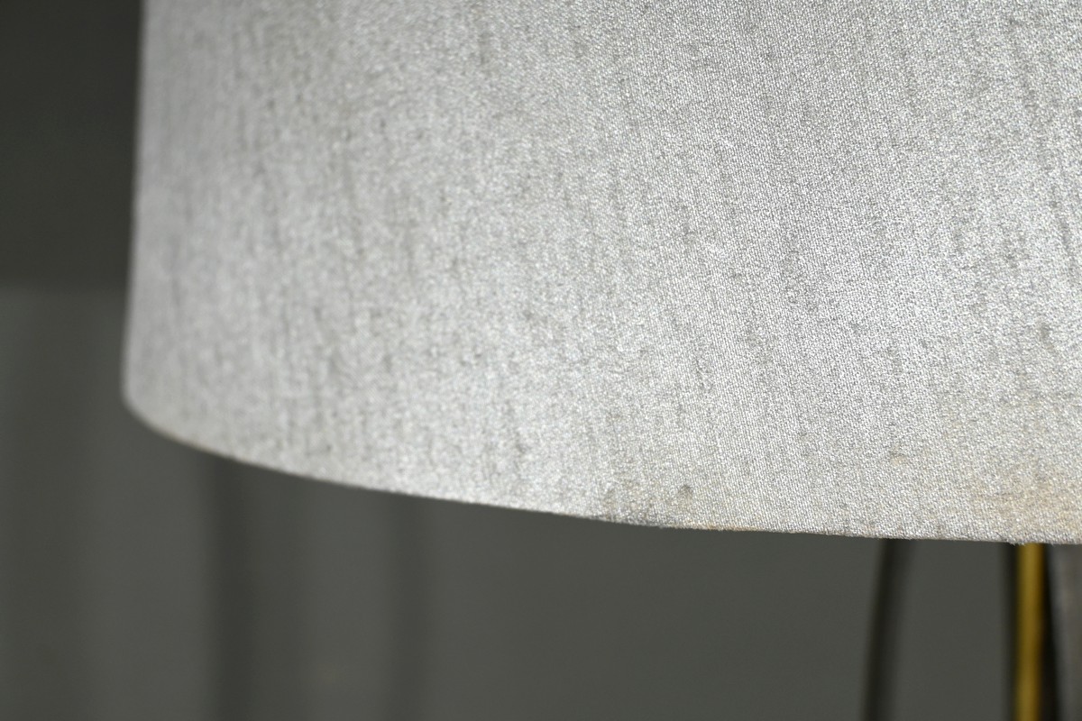 Ce luminaire est couronné par un abat-jour en tissu, qui diffuse une lumière douce et agréable, créant une ambiance chaleureuse et accueillante.